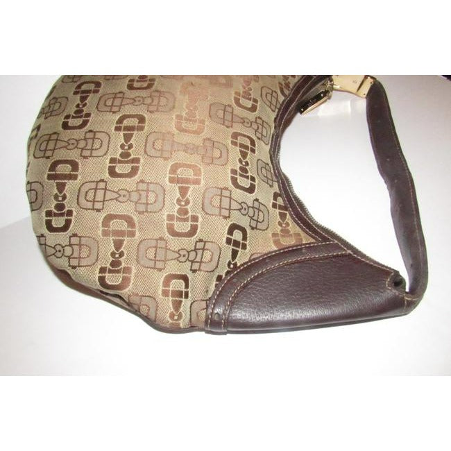 *For sale is a Gucci, large, 'Glam' style, brown horse-bit print canvas and brown leather, hobo style purse with a top zip closure, an adjustable strap with a bold gold accent buckle, and a bohemian look! It is a unique take on the classic hobo style that would be great used as a purse for everyday or as your go to brown bag!
