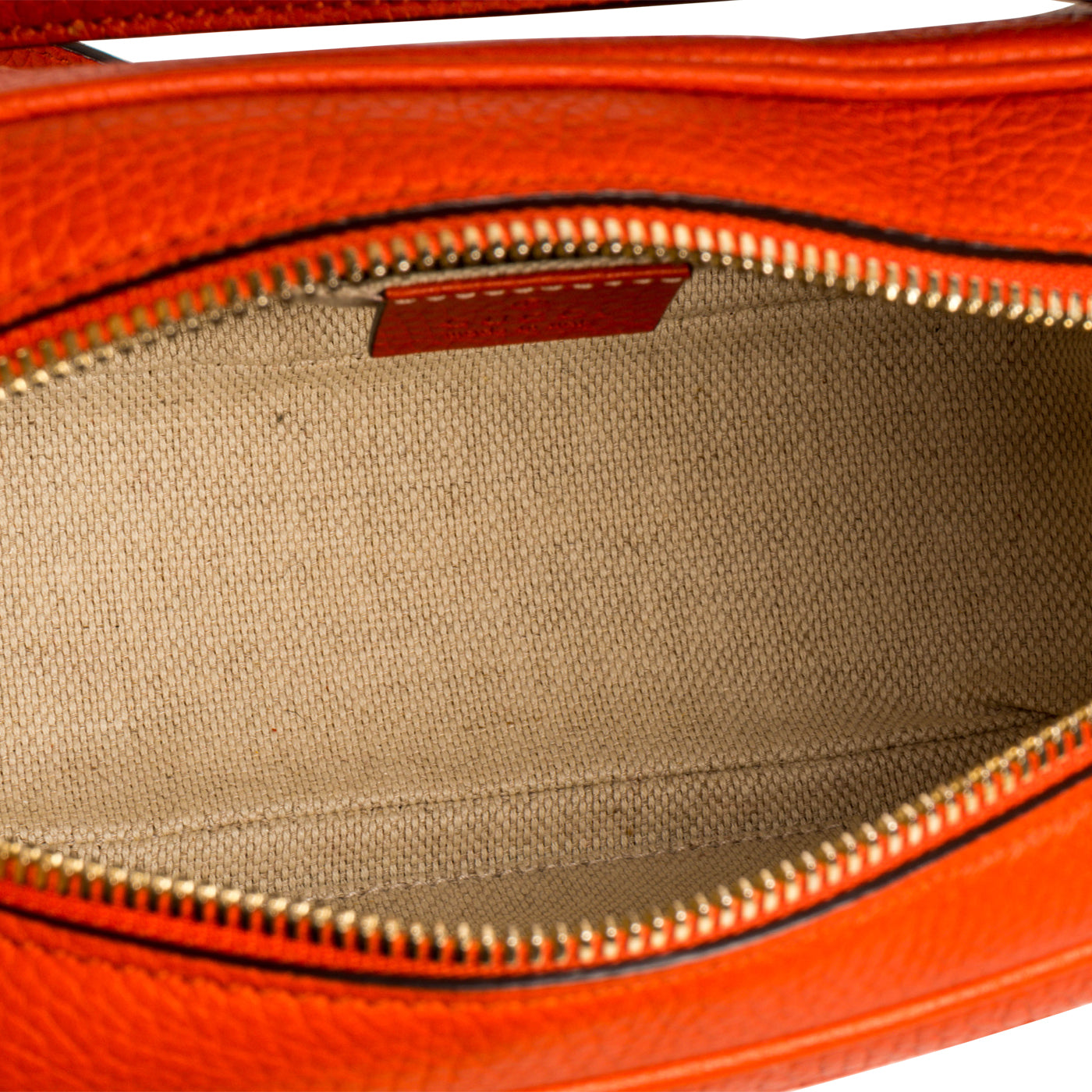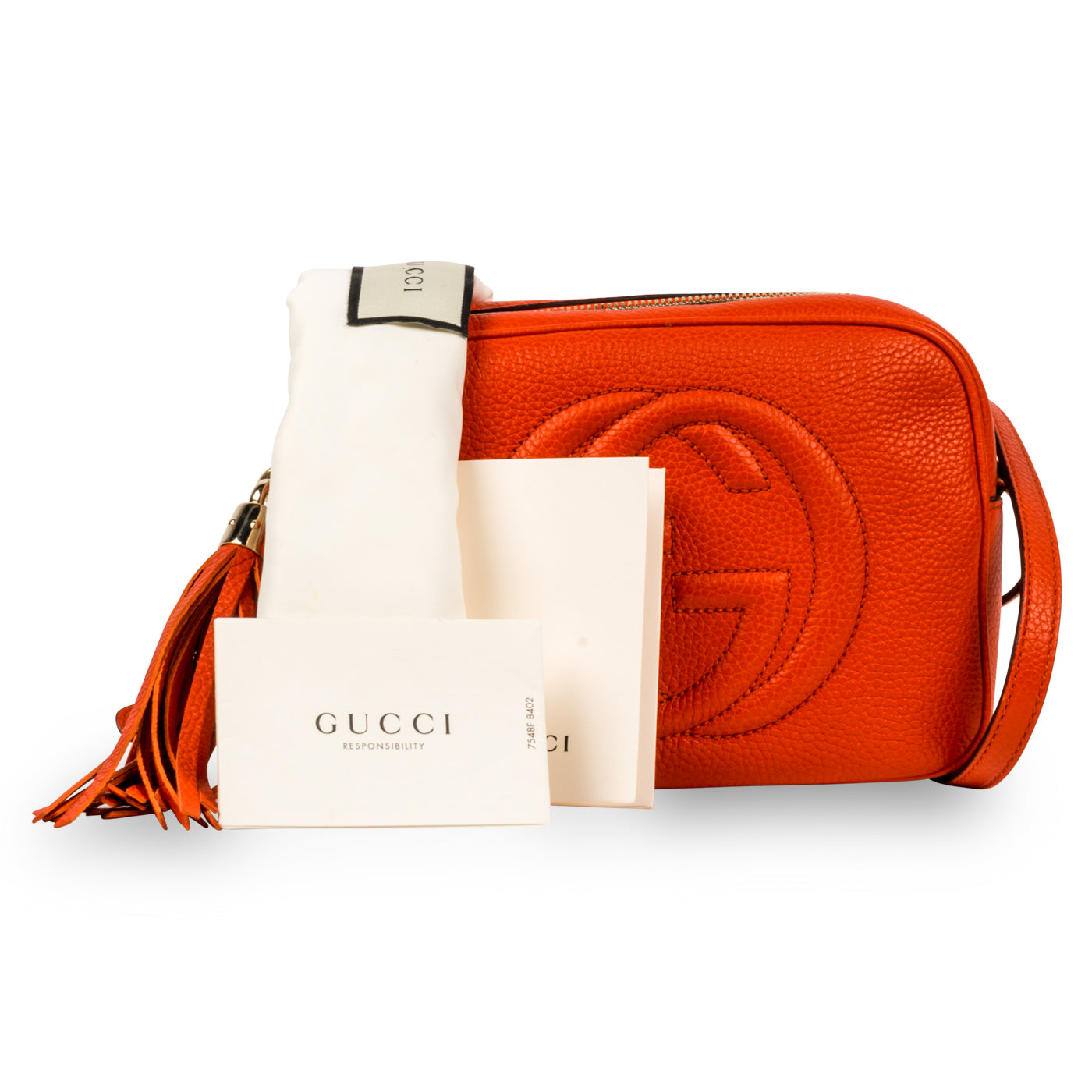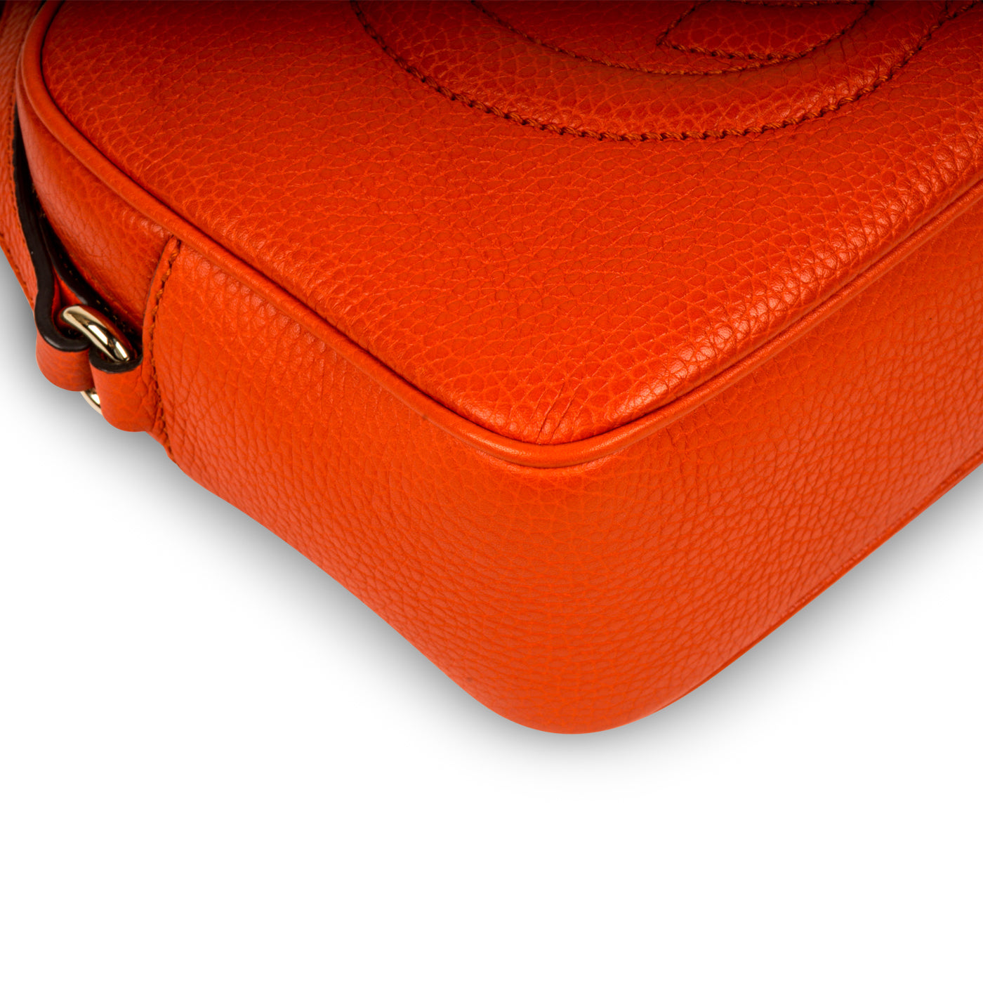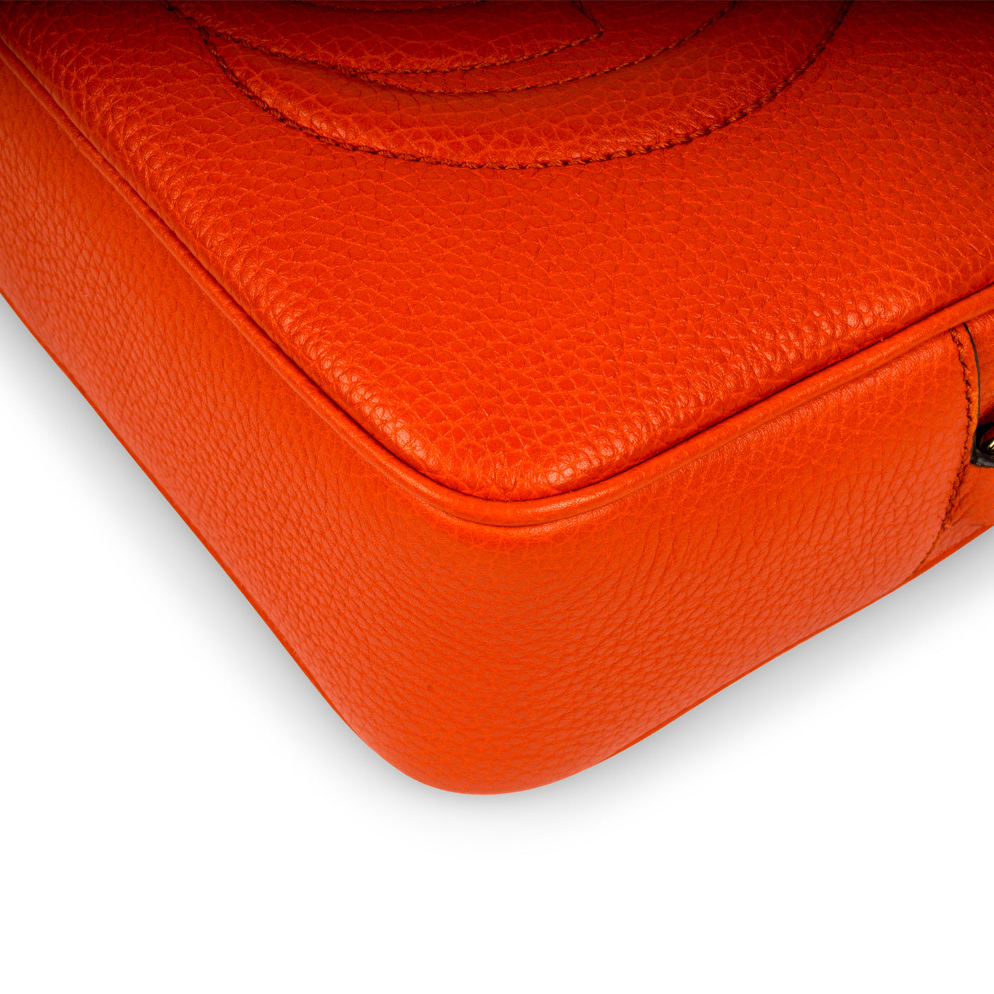 The Soho Disco bag from Gucci quickly became a brand classic upon its debut. A coveted, It-Girl bag, this Disco Soho is crafted from poppy orange grained leather, featuring gold tone hardware and a prominent GG stitched logo. Diverse and versatile, this stunning bag is spacious enough for all your essentials, making it a perfect everyday companion. The Soho’s minimal style makes it suited to almost any outfit - whether it's day or night. The adjustable leather strap lets you wear it across your body so you can go about your day handsfree. Sleek, stylish and sophisticated, the Soho Disco is a well-worthy addition to any luxury handbag collection.