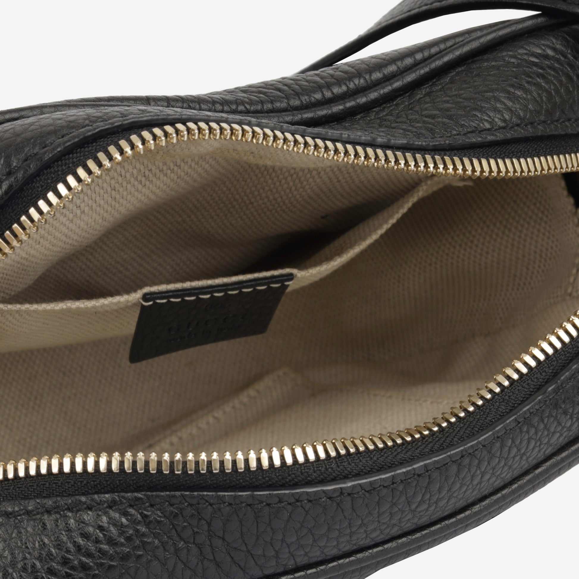 The Soho Disco bag from Gucci quickly became a brand classic upon its debut. A coveted, It-Girl bag, the Disco Soho is crafted from black grained leather, featuring champagne gold tone hardware and a prominent GG stitched logo. Diverse and versatile, this stunning bag is spacious enough for all your essentials, making it a perfect everyday companion. The Soho’s minimal style makes it suited to almost any outfit - whether it's day or night.