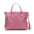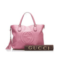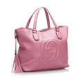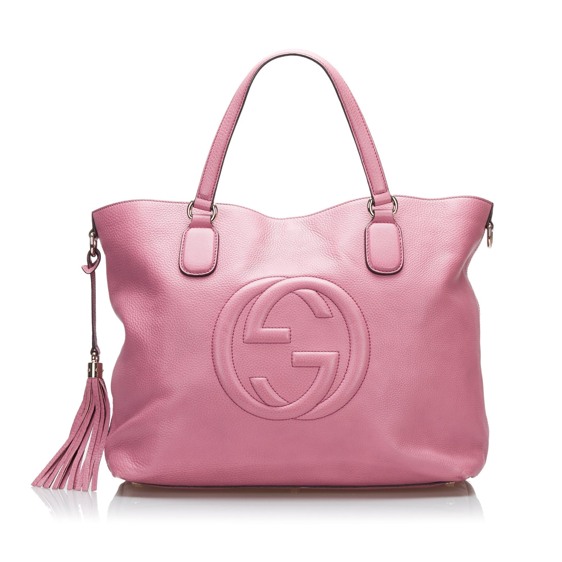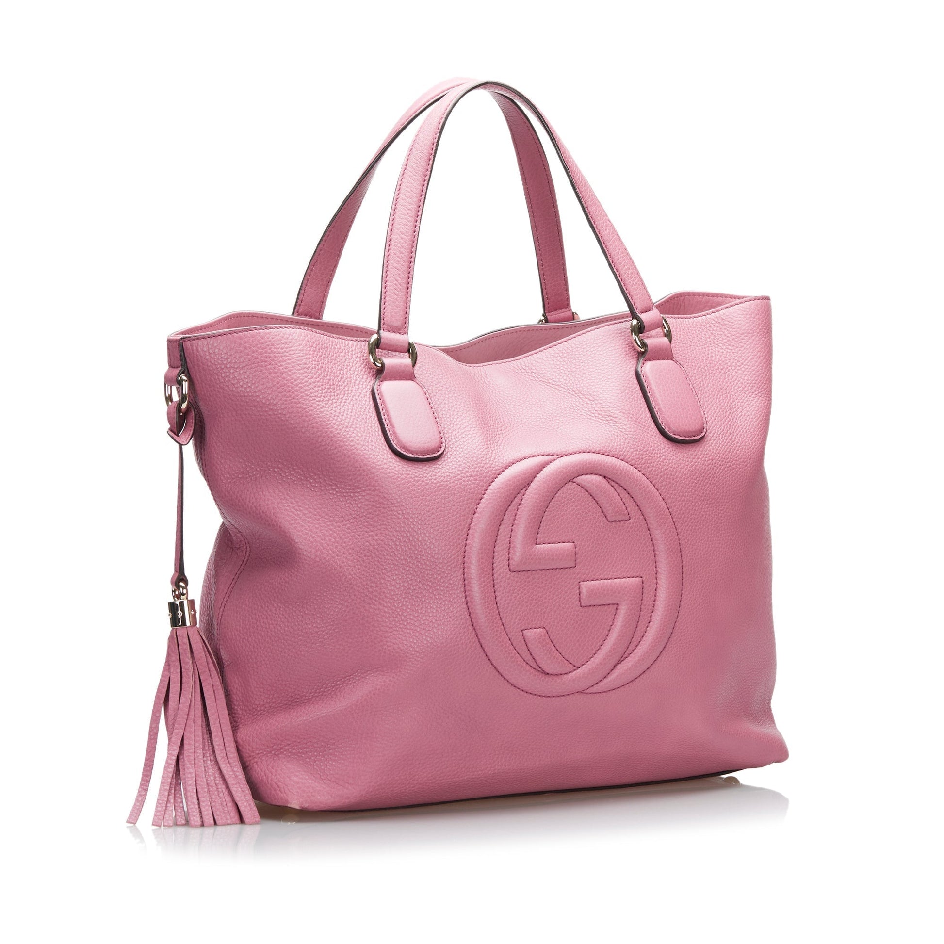 The Soho features a leather body, flat leather handles, a detachable strap, an open top, an interior zip compartment, and interior zip and slip pockets. Comes with dust bag