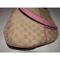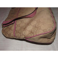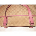* For sale is an authentic, Gucci, brown large G logo canvas and pink leather, two handle, top snap, satchel style 'lunch-box' purse with gold tone accents and a front snap pocket! This is a great looking piece from Gucci with a timeless style!