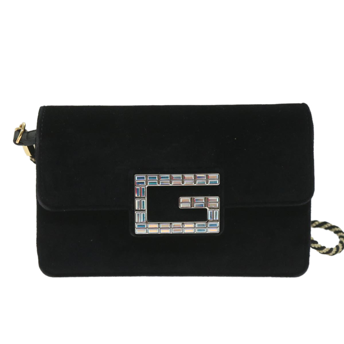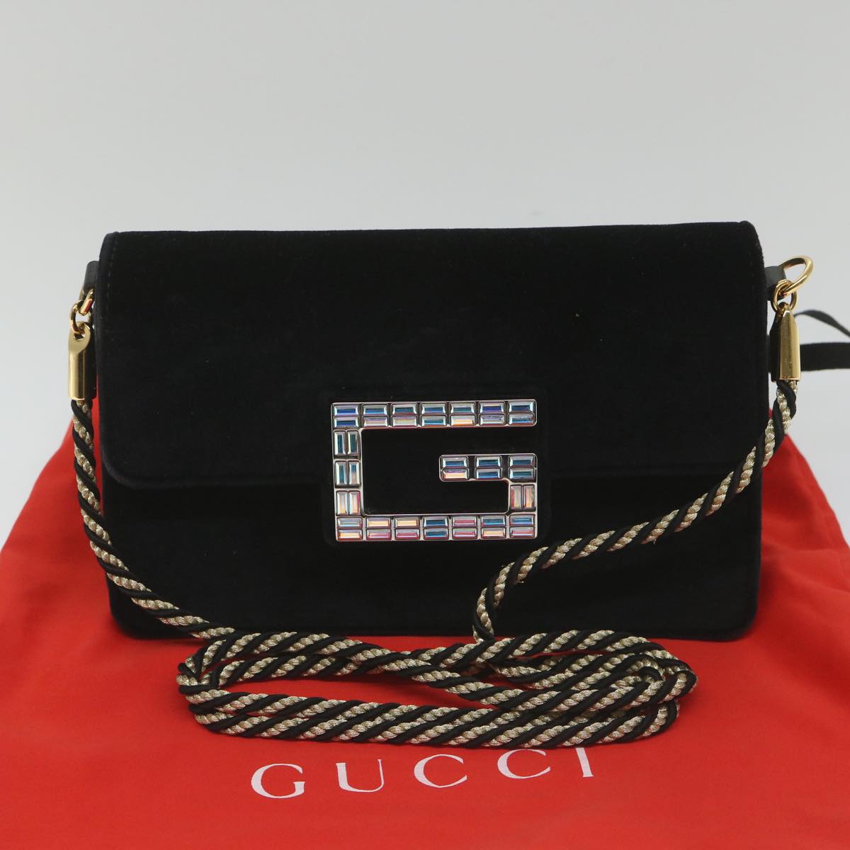 GUCCI Square G Shoulder Bag Velor Black 544242 Auth yk9258