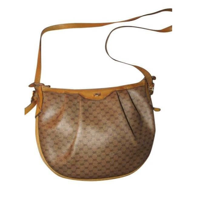 Gucci Sukey Vintage Brown Small G Logo Print Coated Canvas And Camel Leather