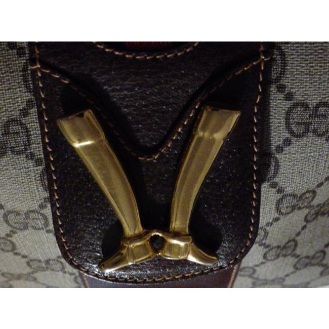Gucci Supreme Guccissima Print Red Green Stripe And Bold Gold Boot Accent Brown Leather