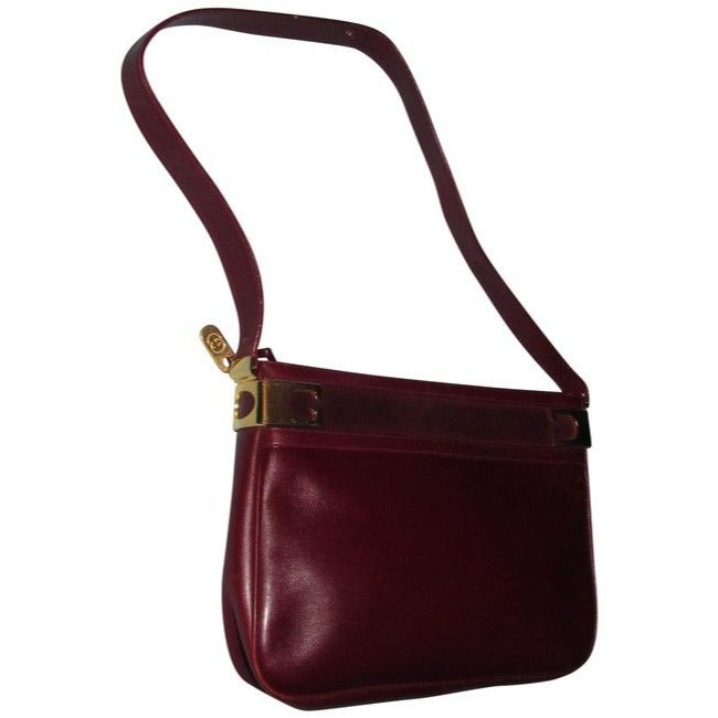 * For sale is a Gucci, buttery soft, burgundy leather, shoulder bag with the top zip framed by gold G logos & a clean, roomy leather interior! It is a rare version of a classic shoulder bag style in a color that would be great used as your signature purse!