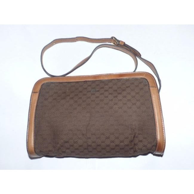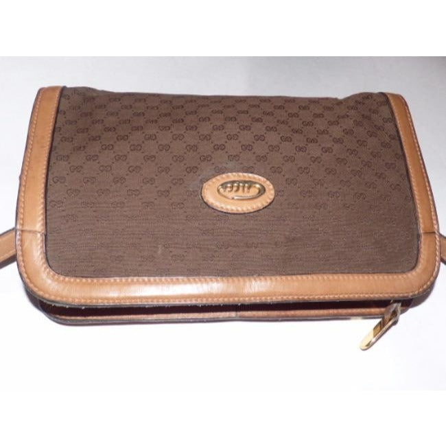 * For sale is a vintage, Mod, Gucci, brown micro Guccissima print canvas fabric and camel leather, rectangular, top zip, cross body or shoulder bag! A quality classic purse from Gucci that will be the only brown purse you will need!