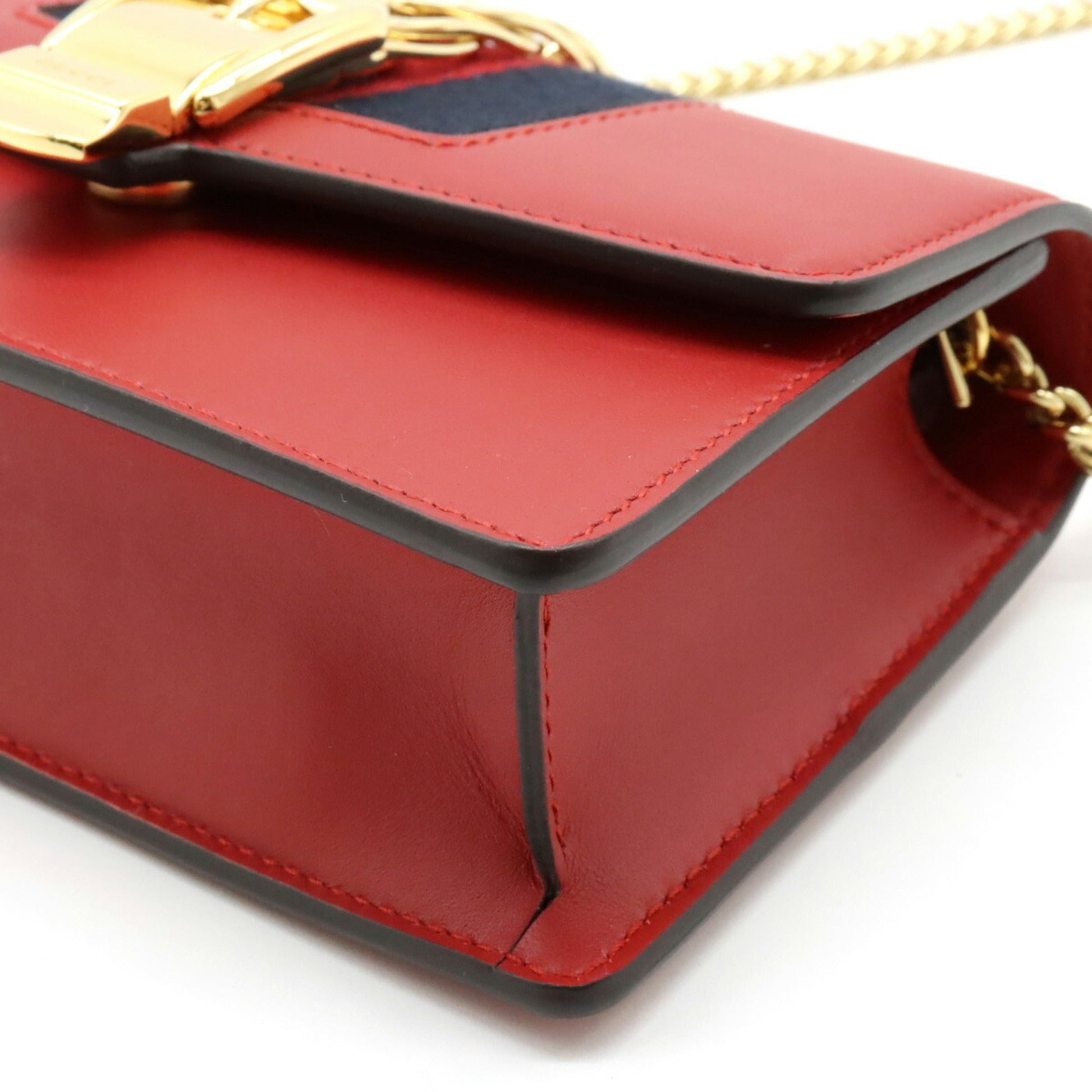 Gucci Sylvie Webline Chain Shoulder Bag Pochette Clutch Leather Red 494646