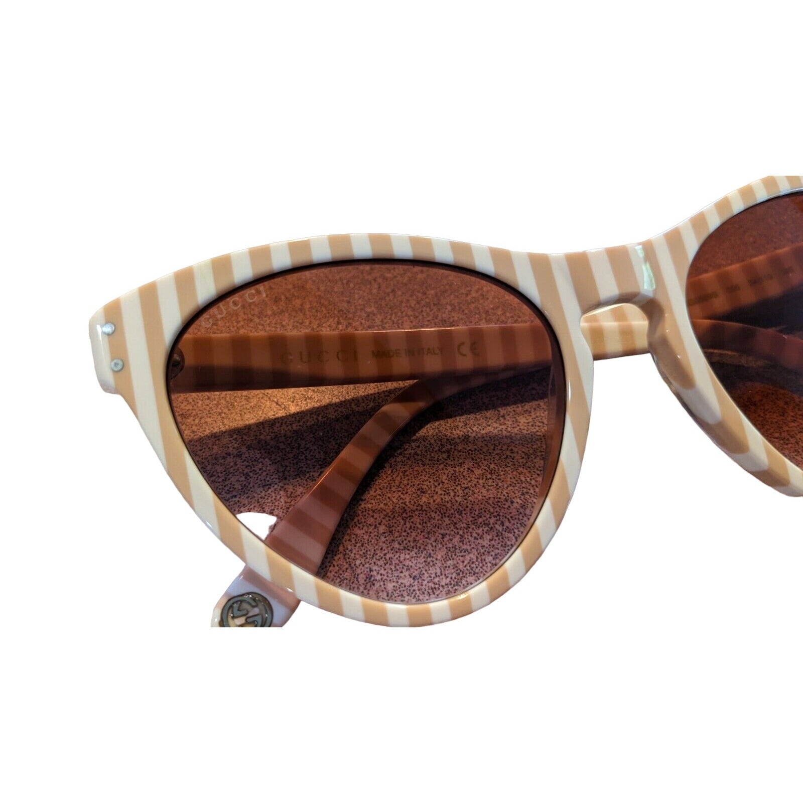 Gucci tan & white striped plastic cat's eye sunglasses