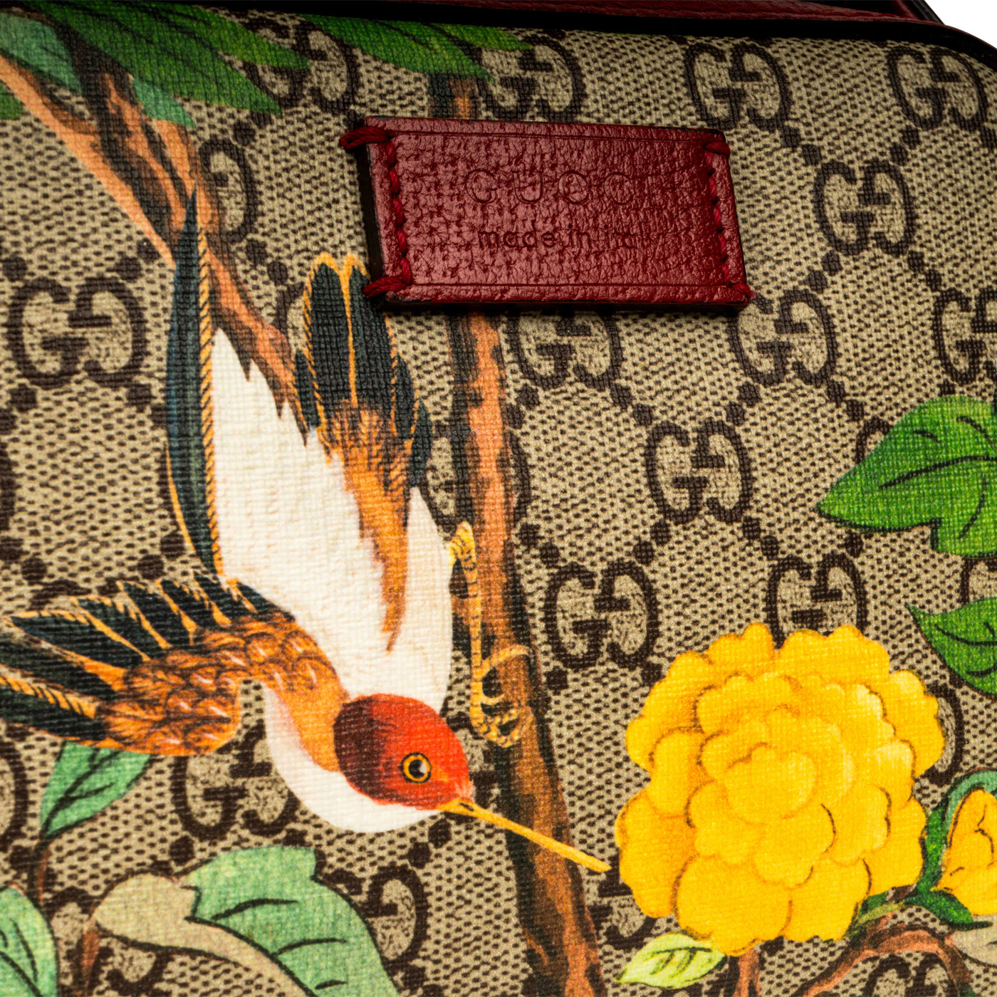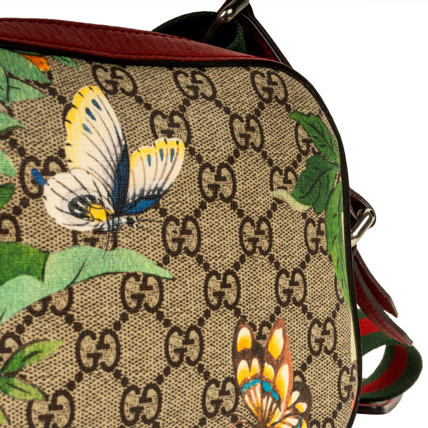 With its signature "GG" monogram canvas featuring a unique, floral pattern throughout and Gucci's classic red and green stripes on the strap, this bag demands your attention. The design is inspired by 18th-century Chinese tapestries, the floral pattern is composed of hummingbirds, tree branches, plants, and of course, flowers. This trendy crossbody bag from Gucci offers the best of both worlds - style and function. The adjustable leather strap allows you to wear it across the body or on the shoulder and it is spacious enough for all your essentials, making it a perfect everyday companion.