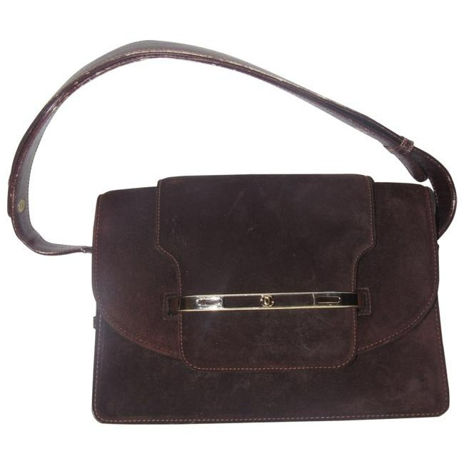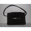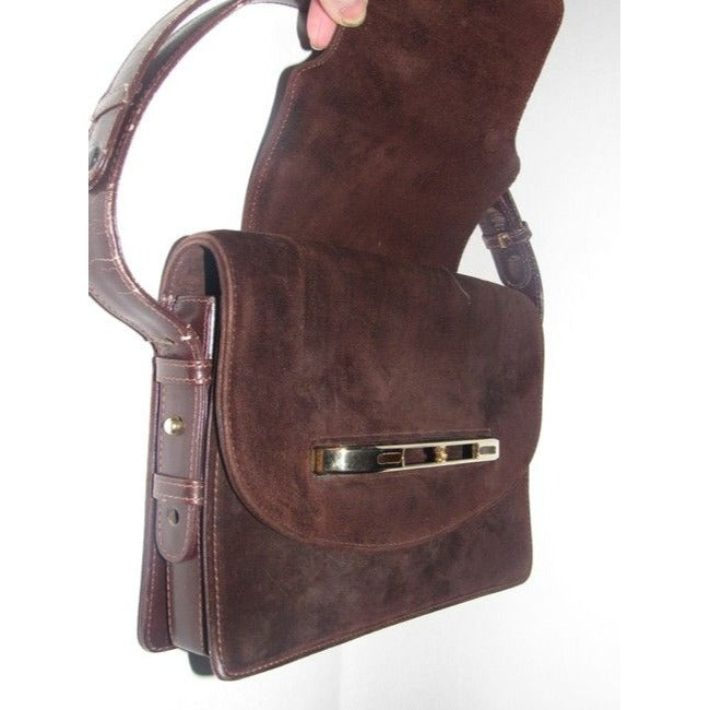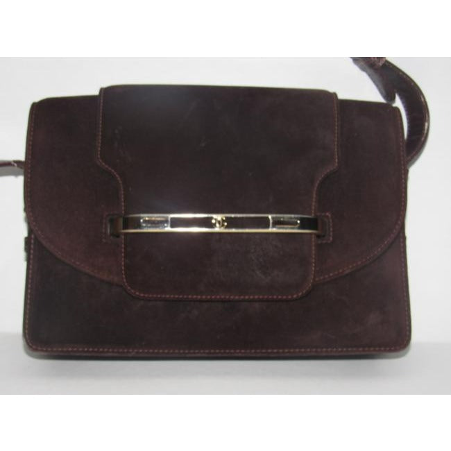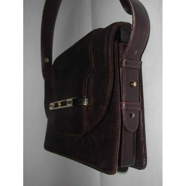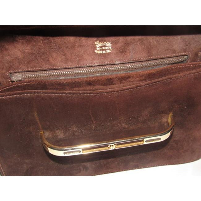 Gucci Top Handle Bar Slide Brown Suede W Bold Gold Clasp Leather And Shoulder Bag