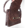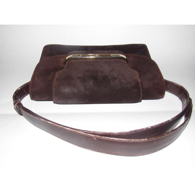 For sale is a rare, early, Gucci, two-way- shoulder bag or clutch style made of brown suede and brown leather with gold hardware, two strap lengths, and multiple compartments! It is a rare early style by Gucci that would be great used as your signature brown purse!