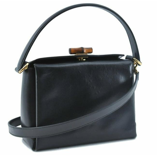 Tom Ford era, Gucci, midnight blue leather, roomy, Bamboo line, two-way top-handle shoulder purse with a bamboo clasp, gold tone hardware, a snap top closure, and a removable strap