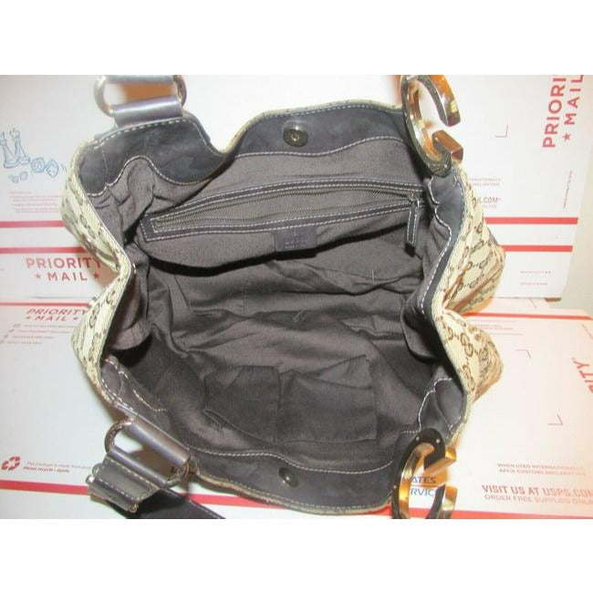 Gucci Top Handle Xl W Canvasleather Metal G Accents Brown Guccissima Print Leather Tote