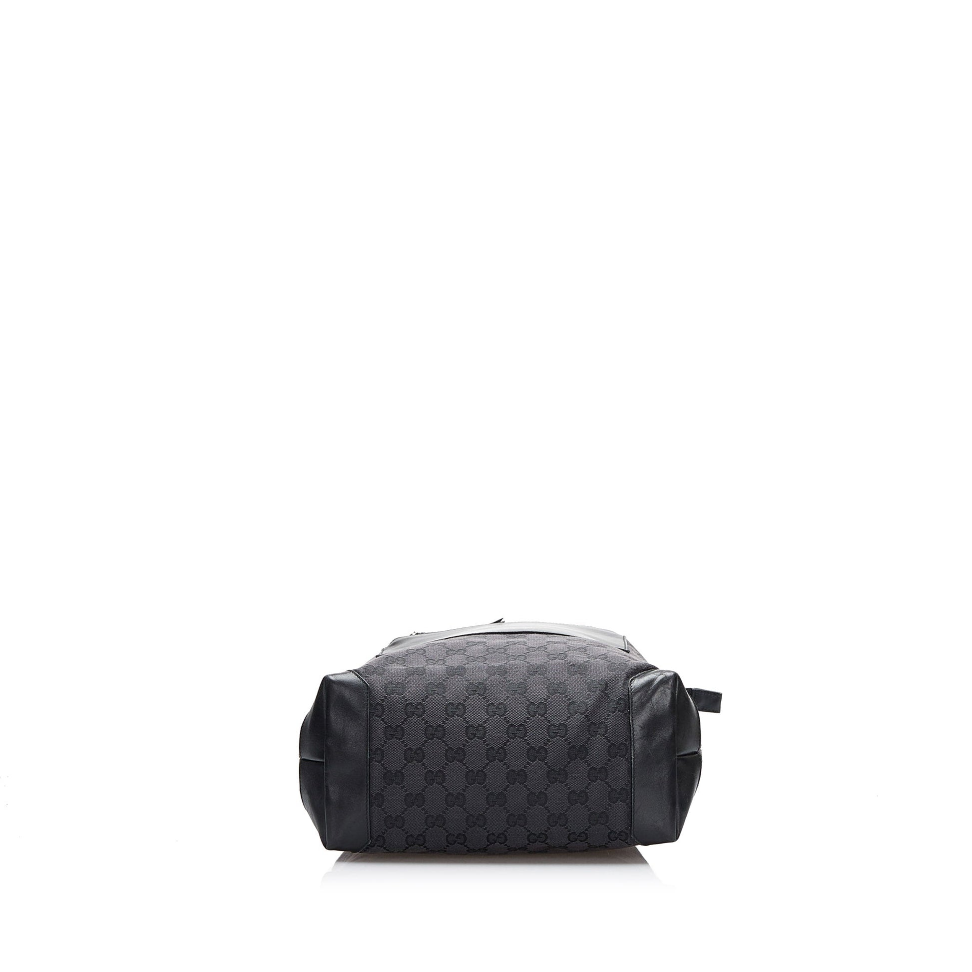 This Gucci handbag combines elegance with a high practicality. The Bag has been crafted from black GG canvas and is embraced by black leather trimmings and silver details. The Bag has an outer slip pocket on the front. The Bag has flat handles made of black leather for safe and comfortable transport on the shoulder or even in the hand and arm. The top zippered opening allows quick access to the interior. Here the Bag has a zippered compartment.