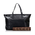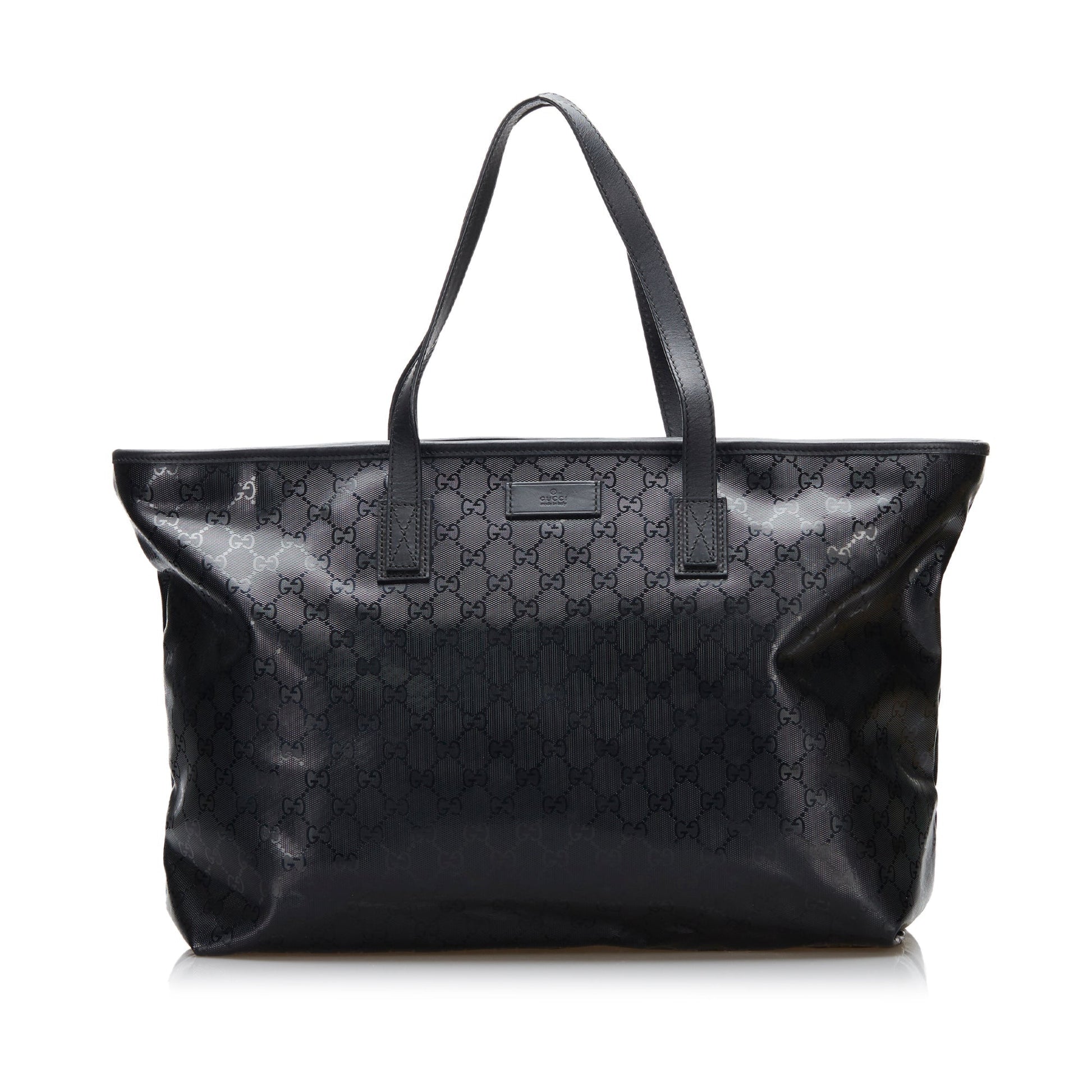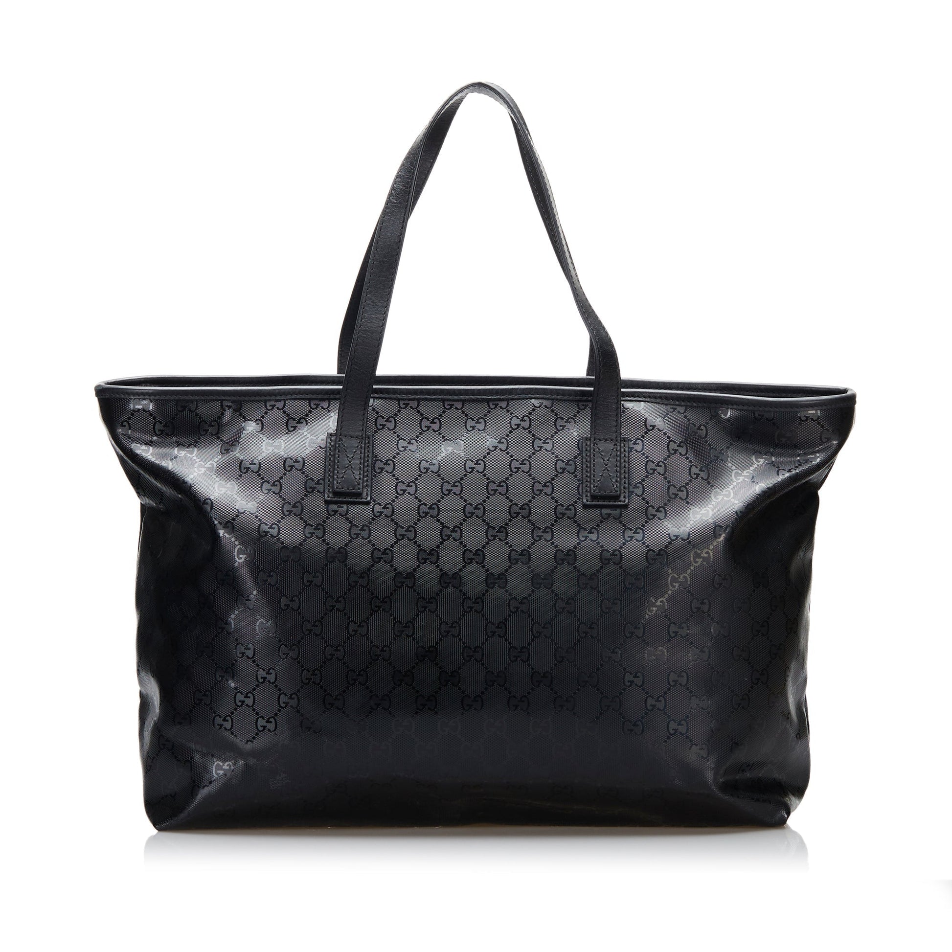 The Tote Bag from Gucci is made of black GG Imprim� canvas. It has flat leather handles, a top zipper closure and an inside zipper pocket.