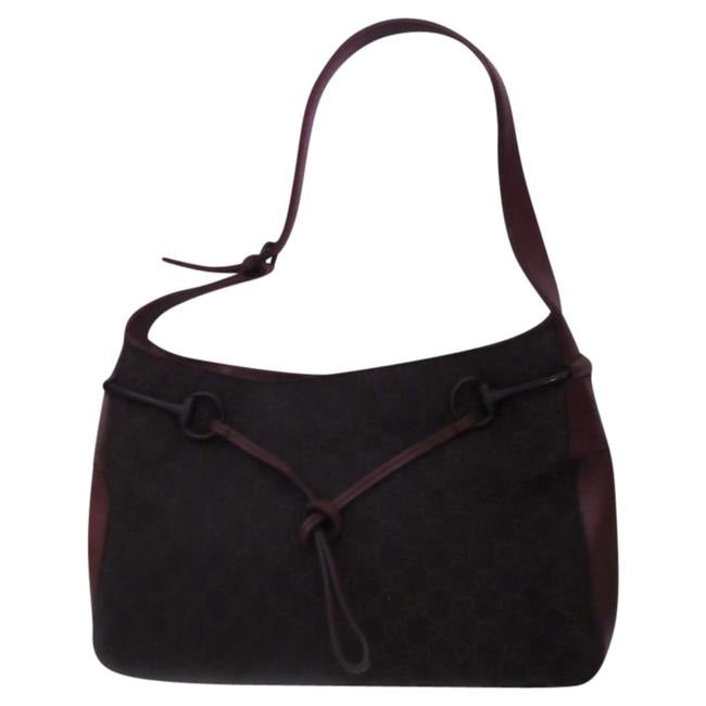 For sale is a Gucci, brown large G logo print canvas & brown leather, roomy, snap top, tote or satchel style shoulder bag with equestrian accents and a leather drawstring top accent! This is a classic, gorgeous bag that is perfect for everyday!