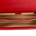 - Red leather trim and inner flap