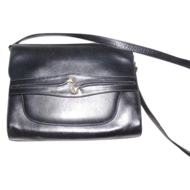 Gucci Two Way Glossy Blackhorsebit Accents Leather Shoulder Bag