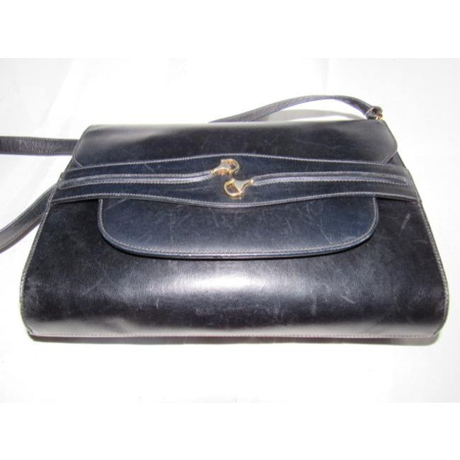 This piece is in great condition! It is a unique style in a classic design. This is the only black purse that you will ever need! Check out my other listings in my store! I have lots of vintage purses, so, if this one is not for you, I bet I have one that is 'it'! I have several other purses from this line in a more rectangular shape with the same equestrian accents in brown, black, burgundy, and logo pints!