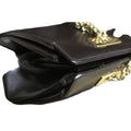 Gucci, unique, brown leather, large satchel style shoulder bag with a snap hinged top, two longer gold chain & leather shoulder straps