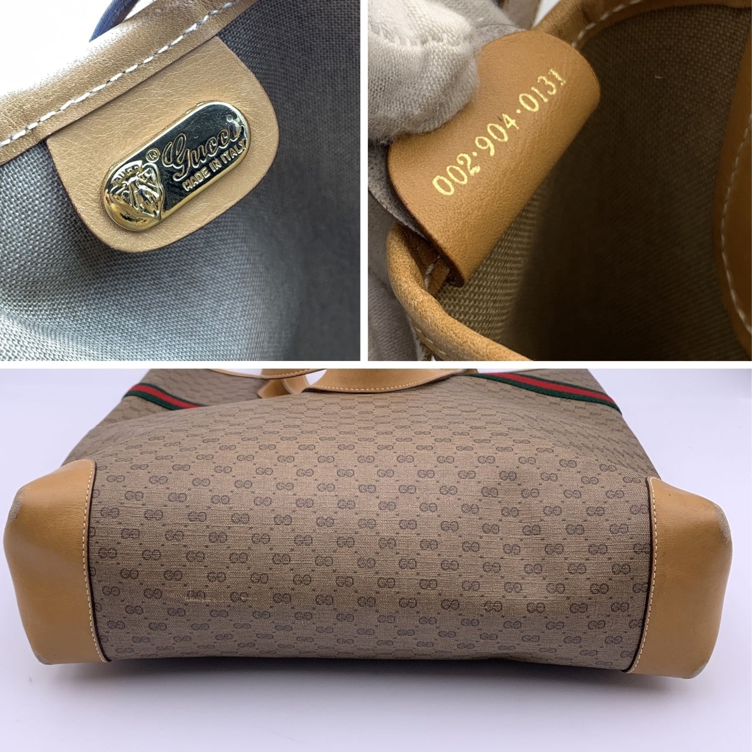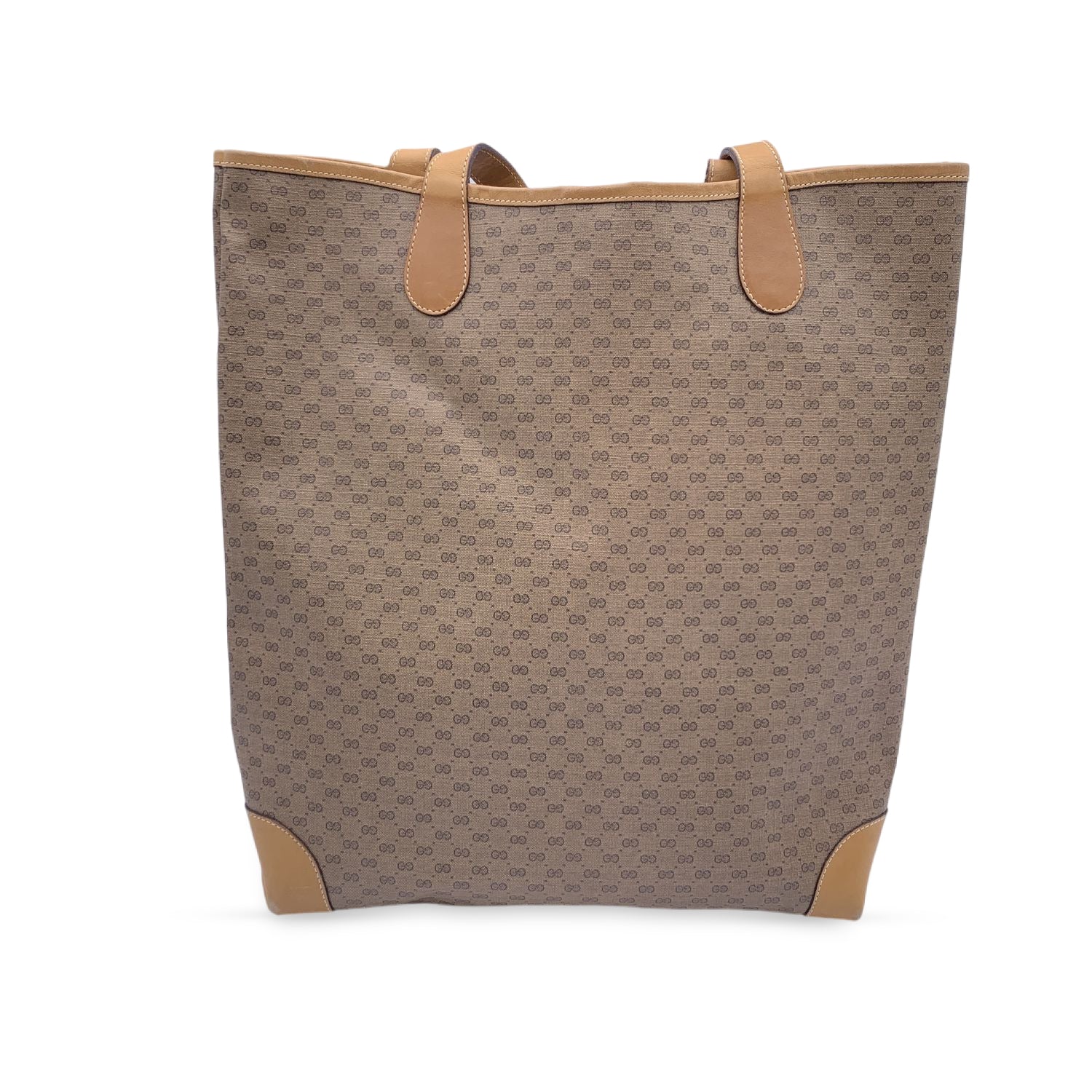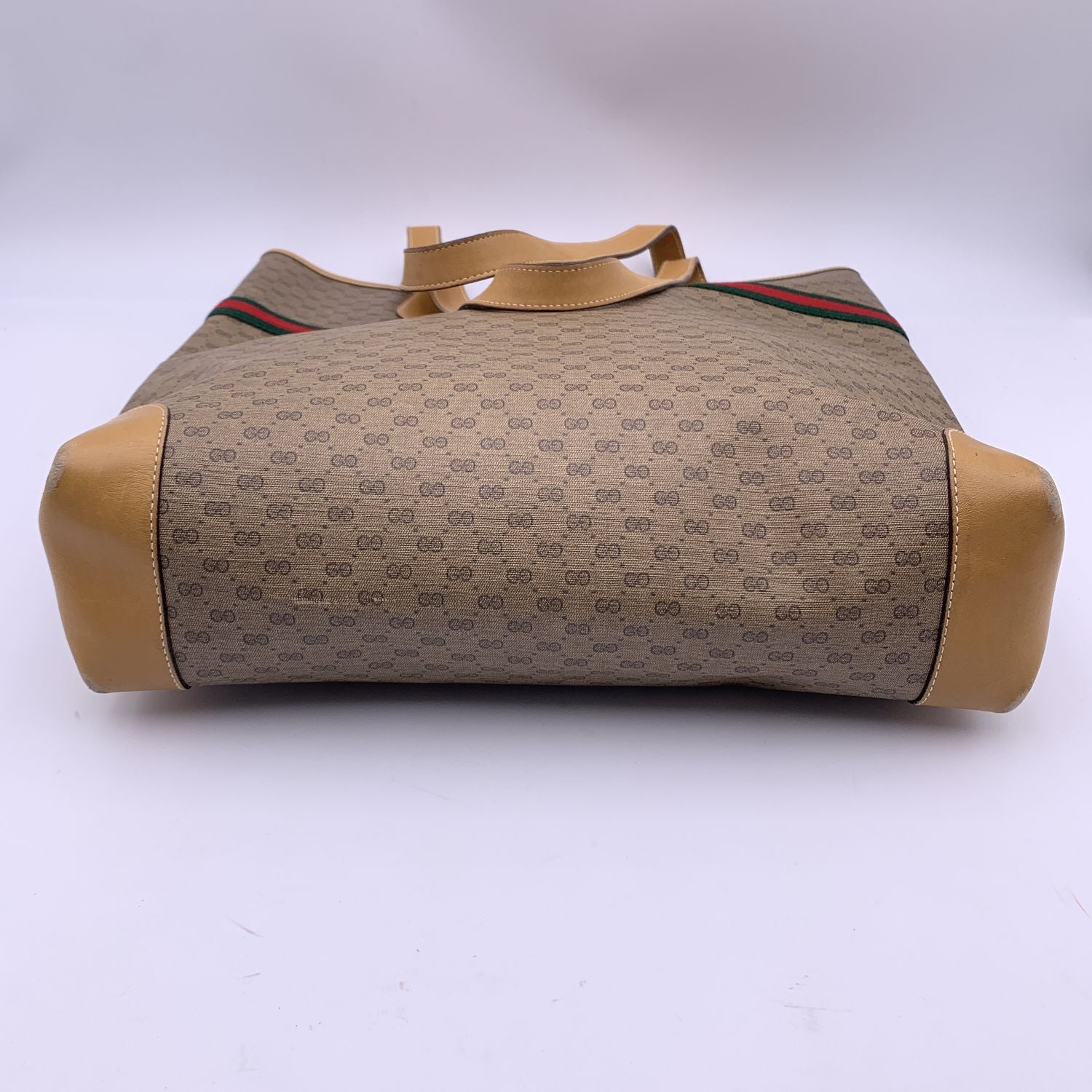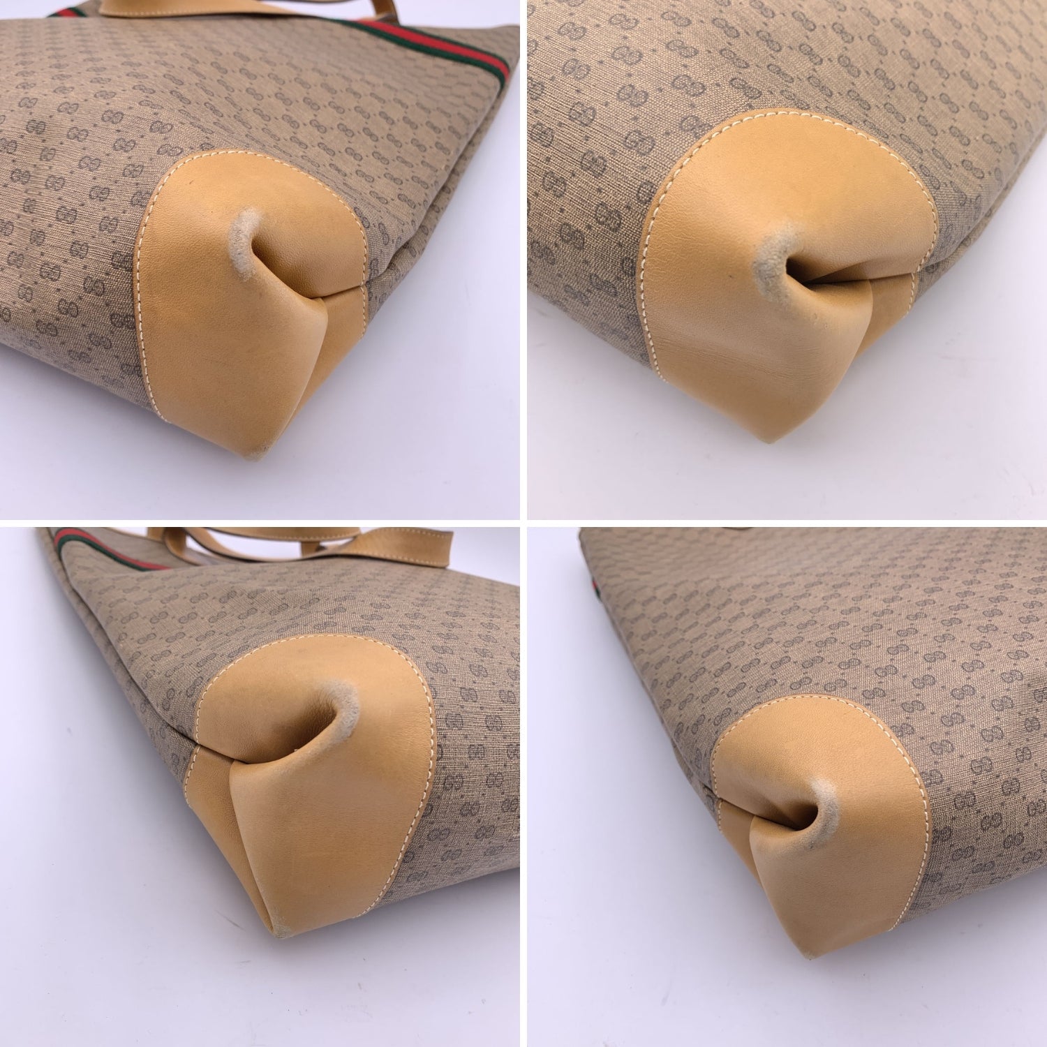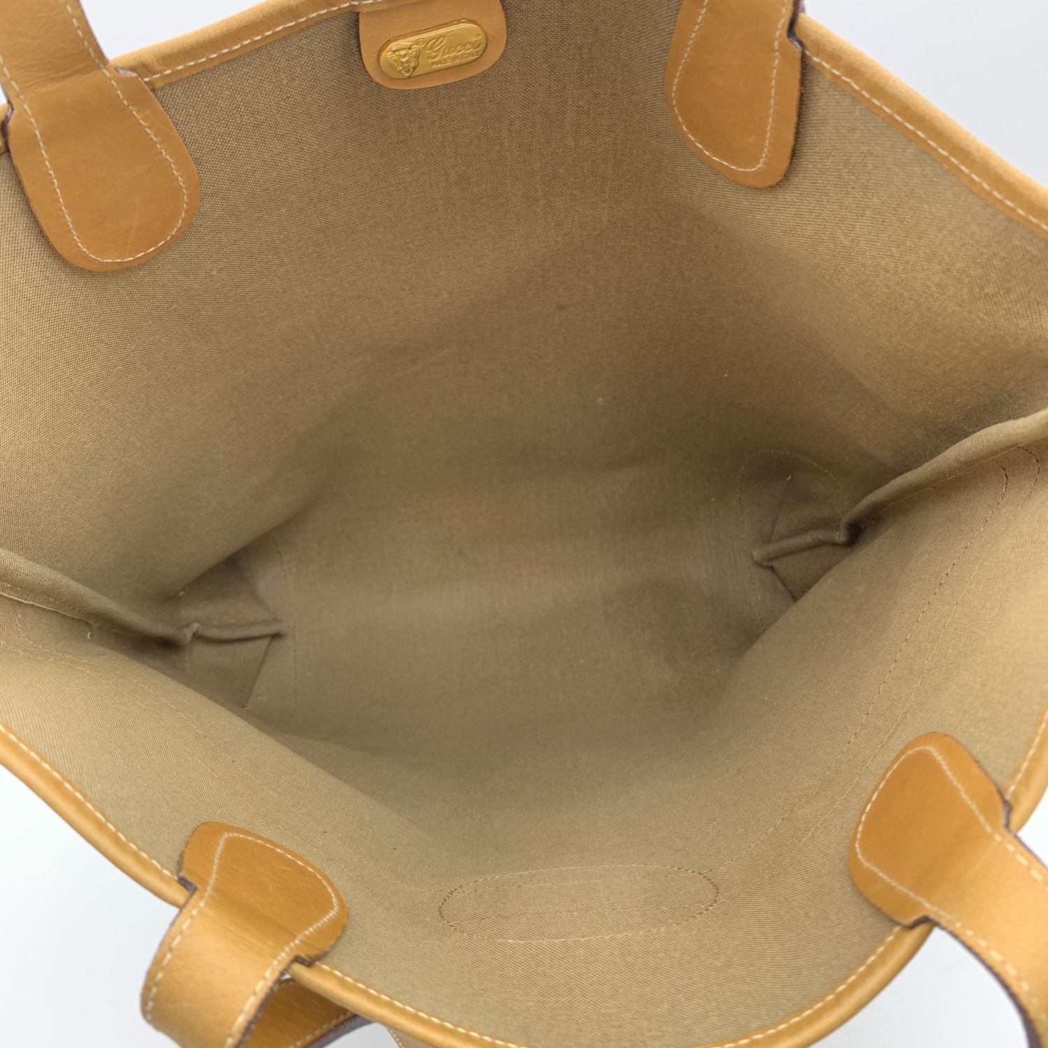 GUCCI Vintage Beige Gg Monogram Canvas Tote Shopping Bag Stripes