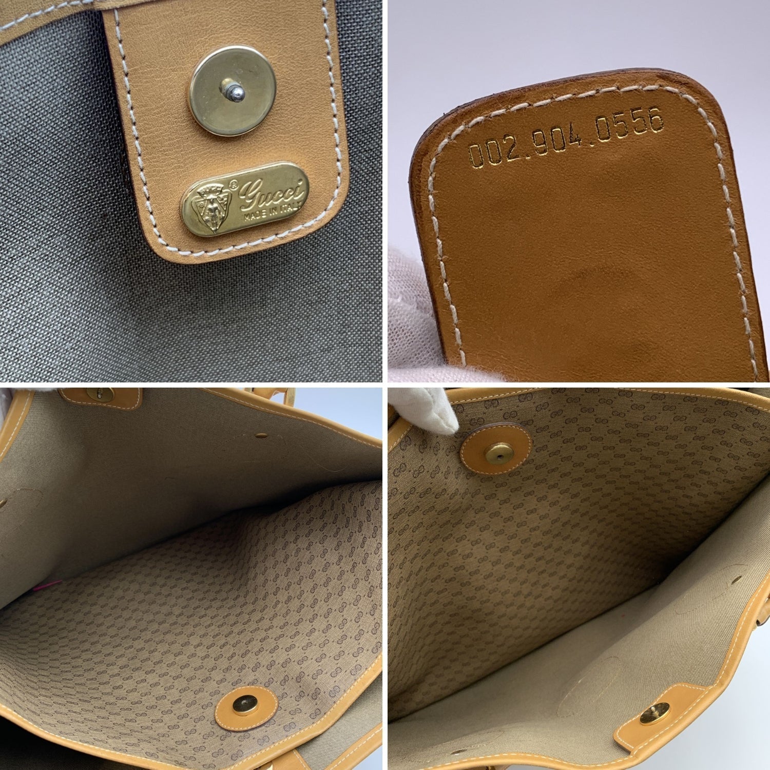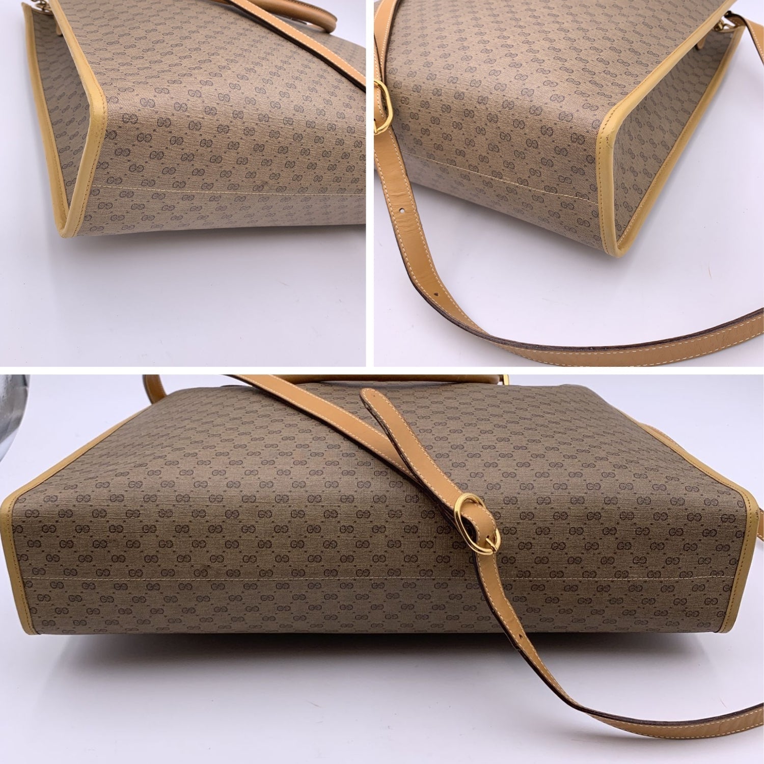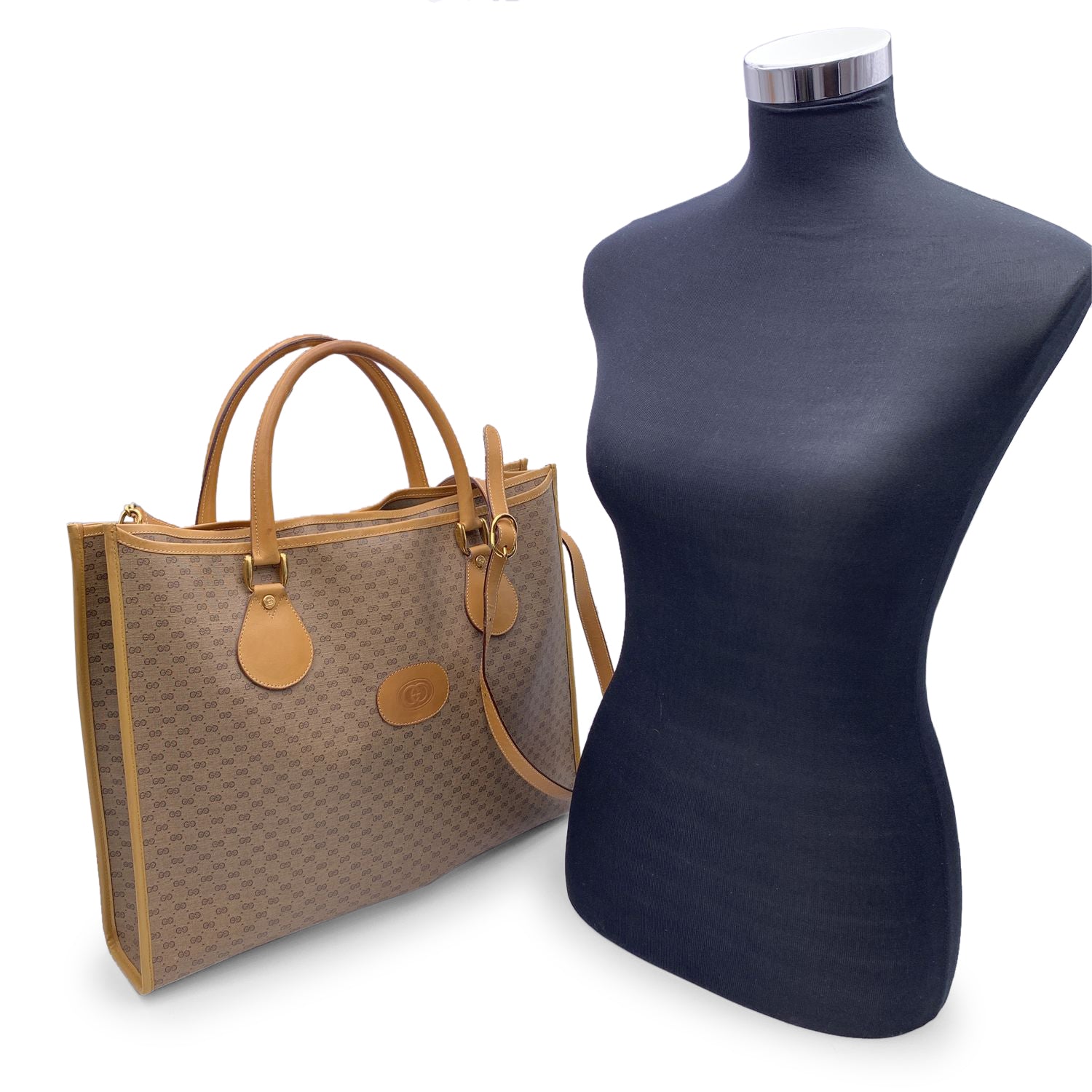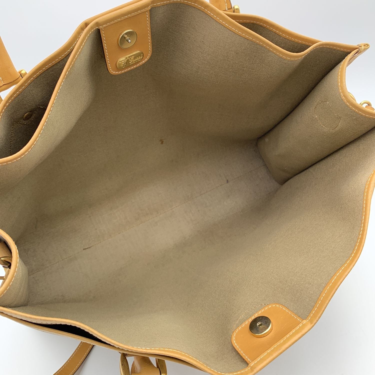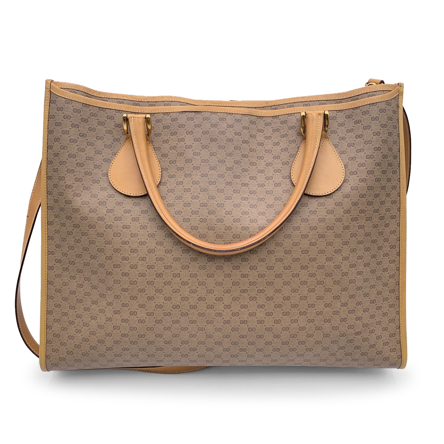 GUCCI Vintage Beige Monogram Canvas Large Tote Bag With Strap