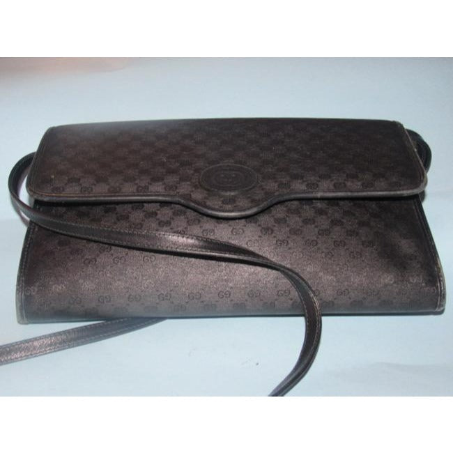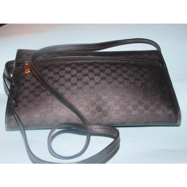 Gucci Vintage Black G Small Logo Print Coated Canvas And Black Leather