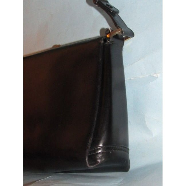 Gucci Vintage Black Glossy Leather Shoulder Bag