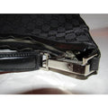 For sale is a Gucci, black canvas, V shaped, zip top, purse with large G logo print, chrome accents, & black leather handle and accents! It has the 1960's classic mod style Gucci is known for and would be great used as your signature black purse or when you want to dress up an outfit!