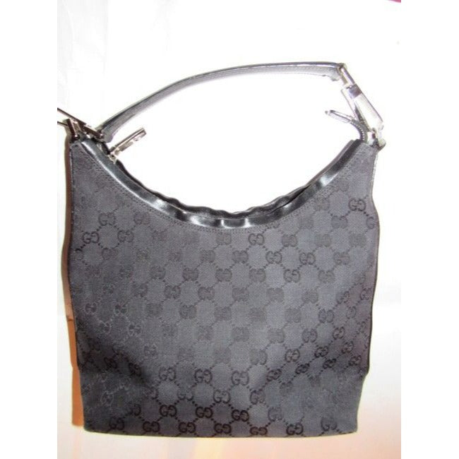 Gucci Vintage Black Large G Logo Print Canvas And Leather Hobo Bag