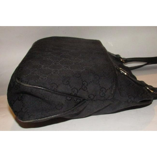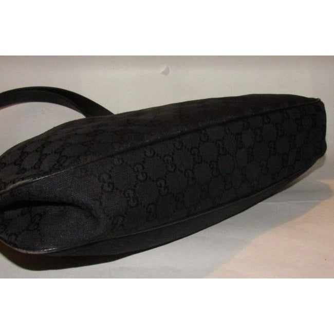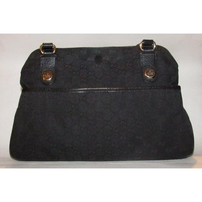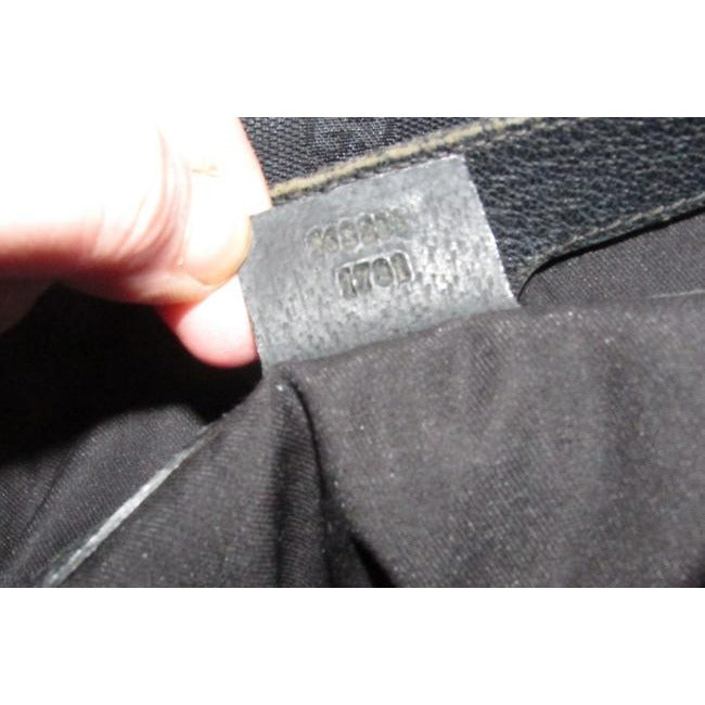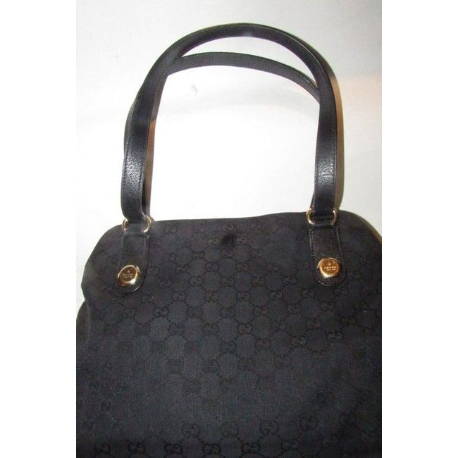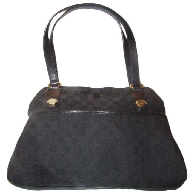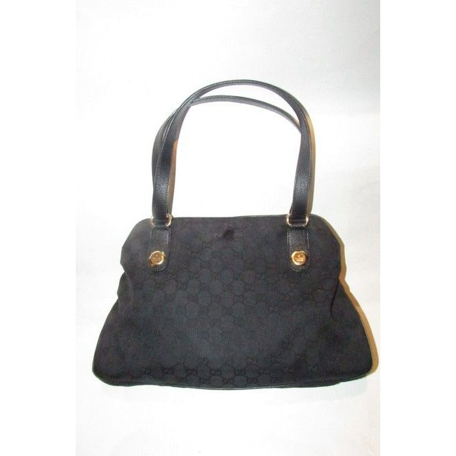 Gucci Vintage Black Large Logo Print Canvas And Black Leather