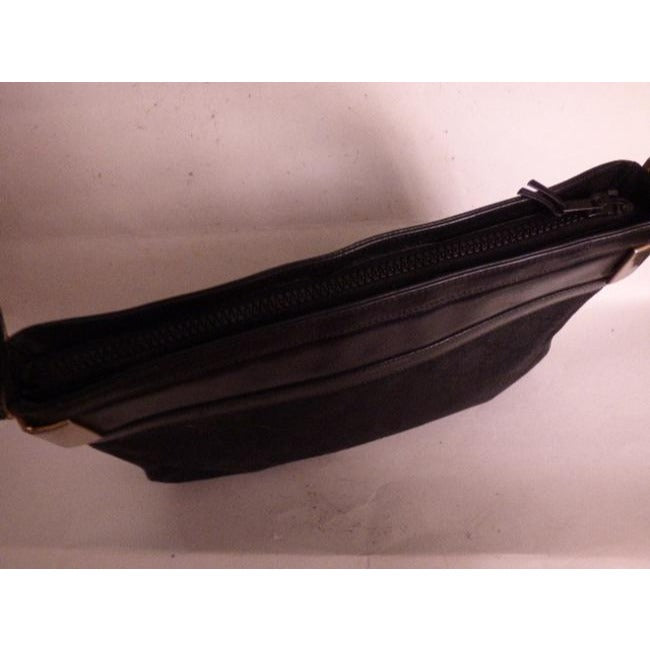 Gucci Vintage Black Leather And Large G Logo Print Canvas Suede Hobo Bag