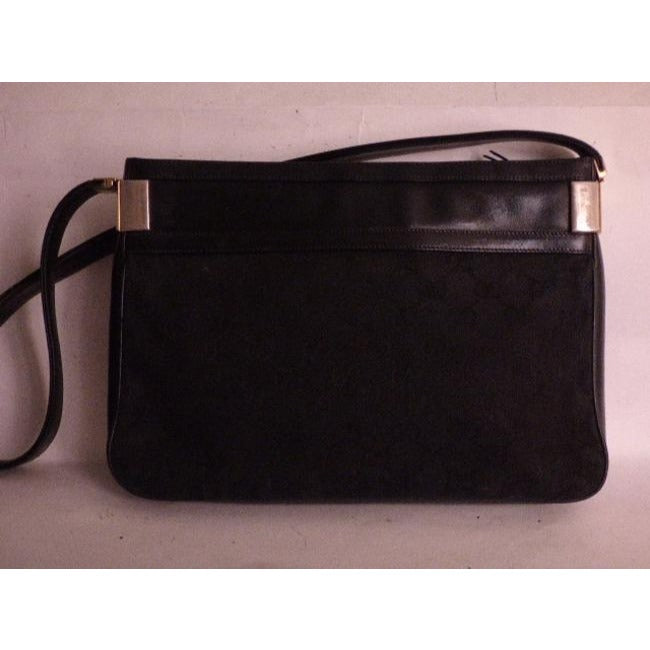 The bag has a large logo design in black canvas and black leather top. strap and piping. It is a zip top,hobo style shoulder bag style with faded gold tone GG accents.. It has all of the details an authentic Gucci should, like the YKK zipper, stamped hardware, and pre-dates serial numbers but is embossed with a gold 'Gucci, Made in Italy stamp.
