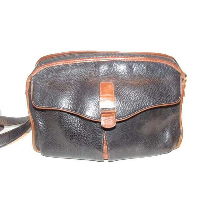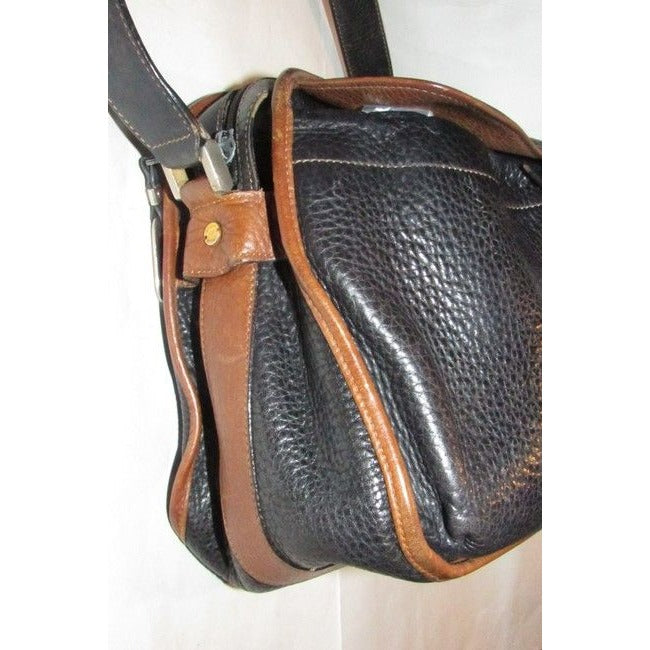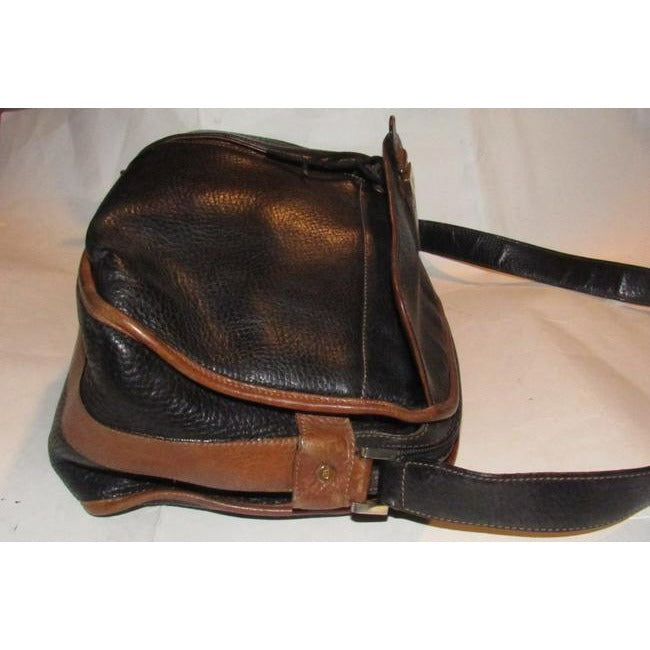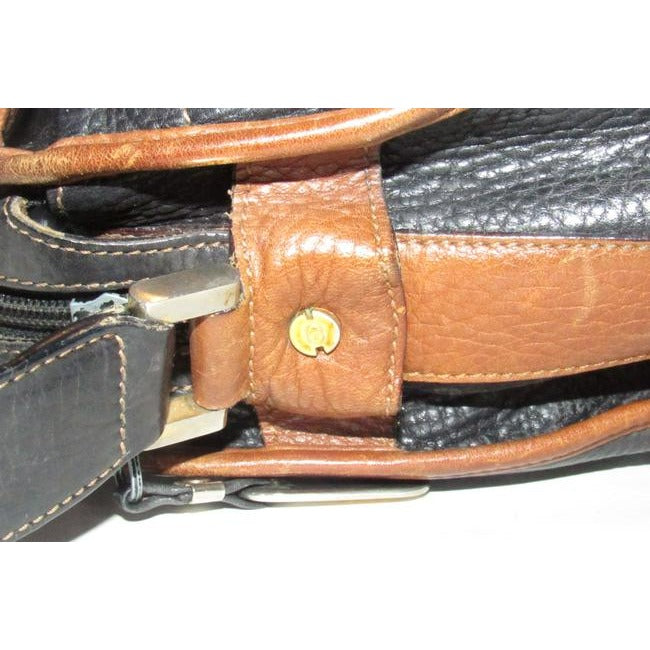 Gucci Vintage Black Pebbled Leather And Brown Smooth Leather Satchel