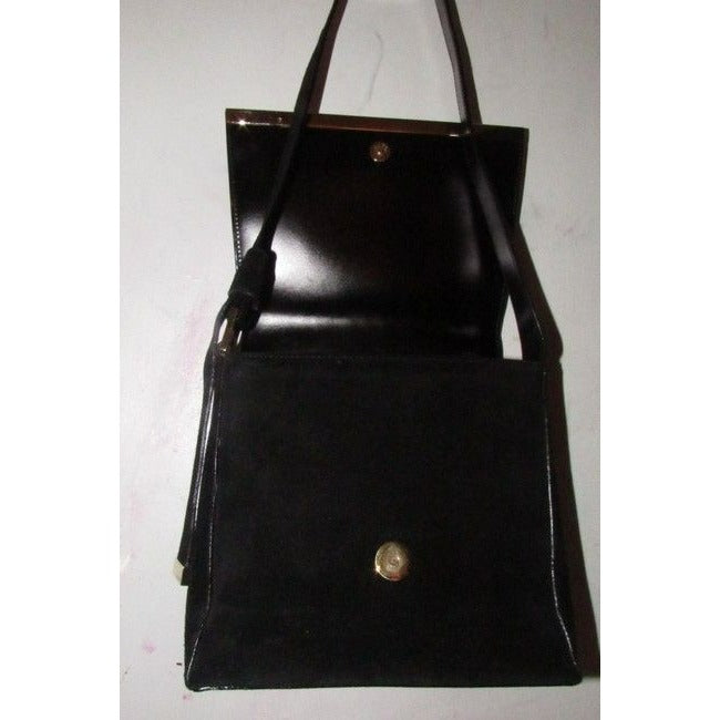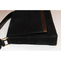 This is an amazing, vintage, new old stock shoulder purse with its tags from Neiman Marcus attached! The bag is a rare, black suede and leather purse by Gucci that is very avant garde and European chic. It is a shoulder bag with a long, envelope top, snap style closure.