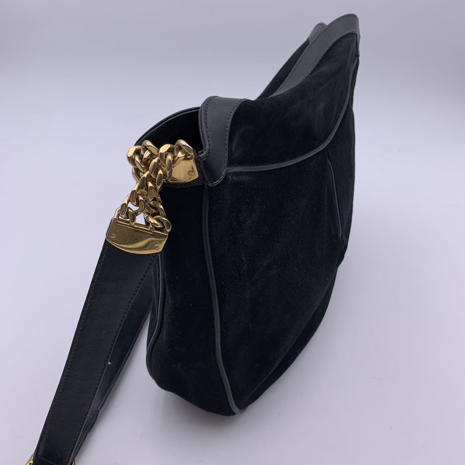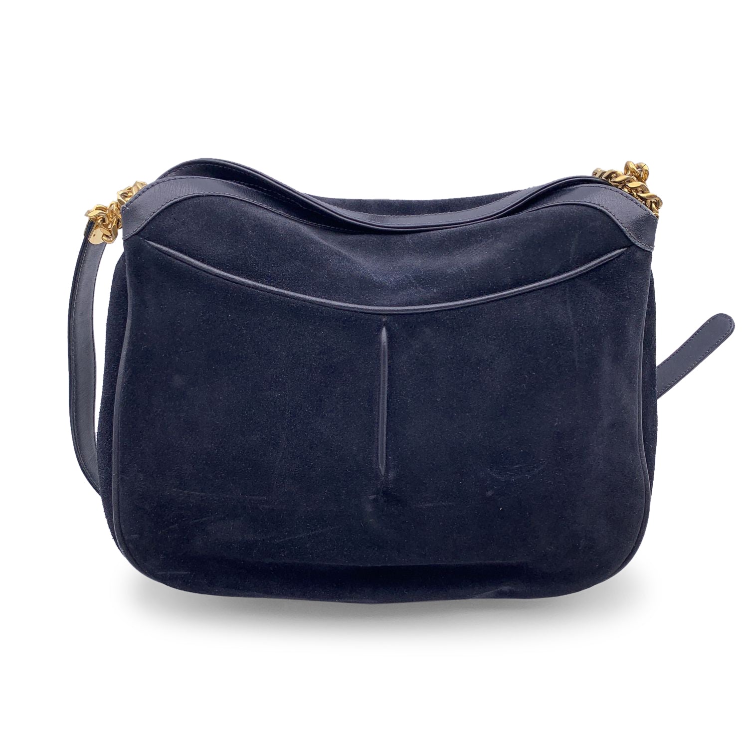 Vintage Gucci Blue Suede And Leather Shoulder Bag.