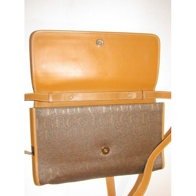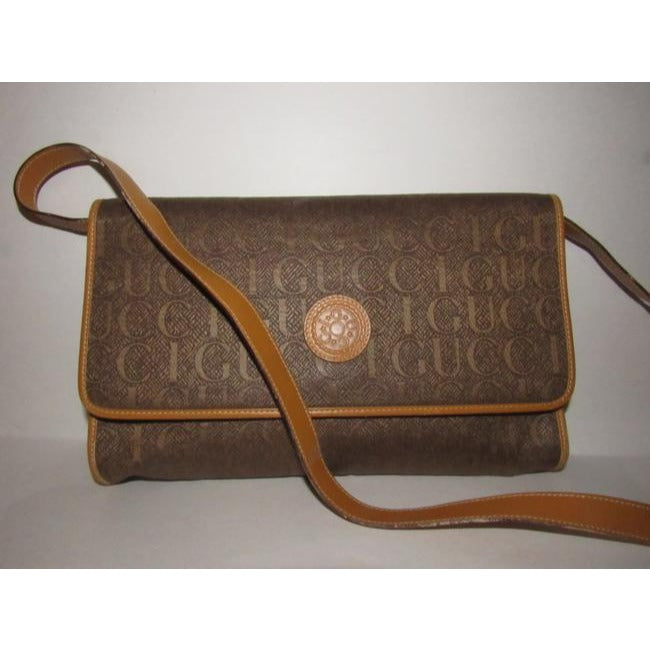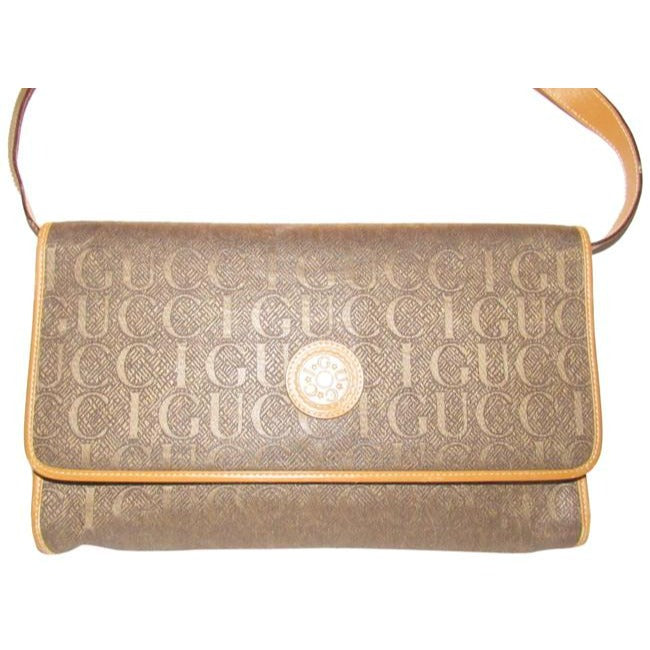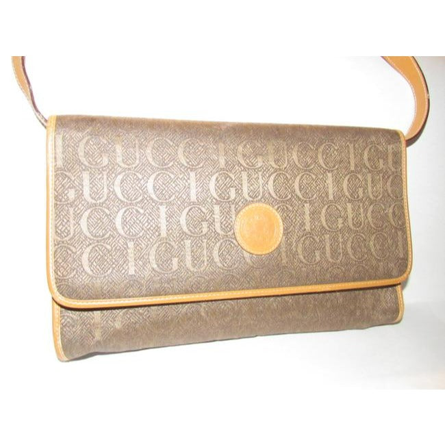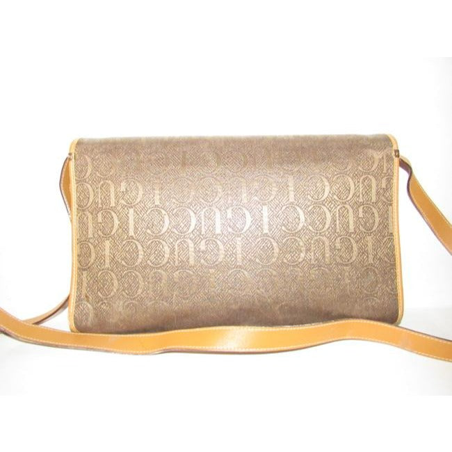 Gucci Vintage Brown Gucci Print Canvas And Camel Leather Shoulder Bag