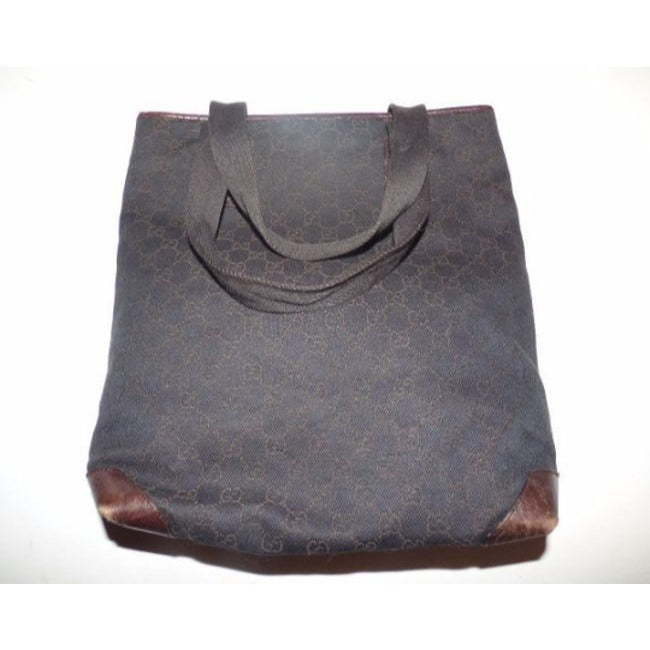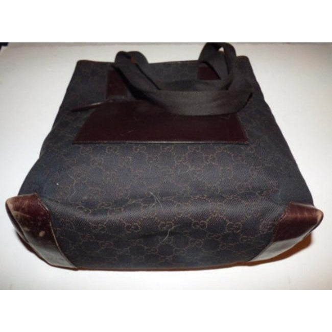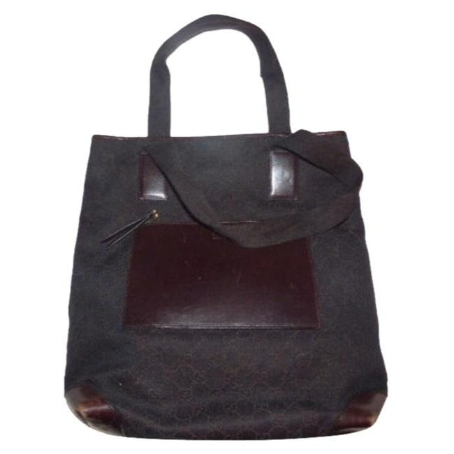 Gucci Vintage Brown Large G Logo Print Canvas And Leather Tote