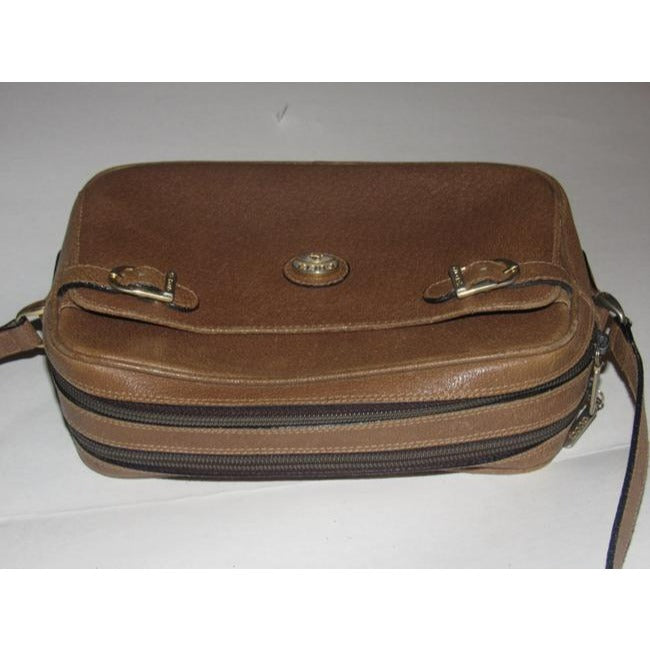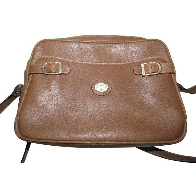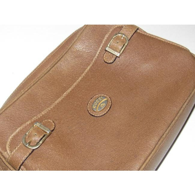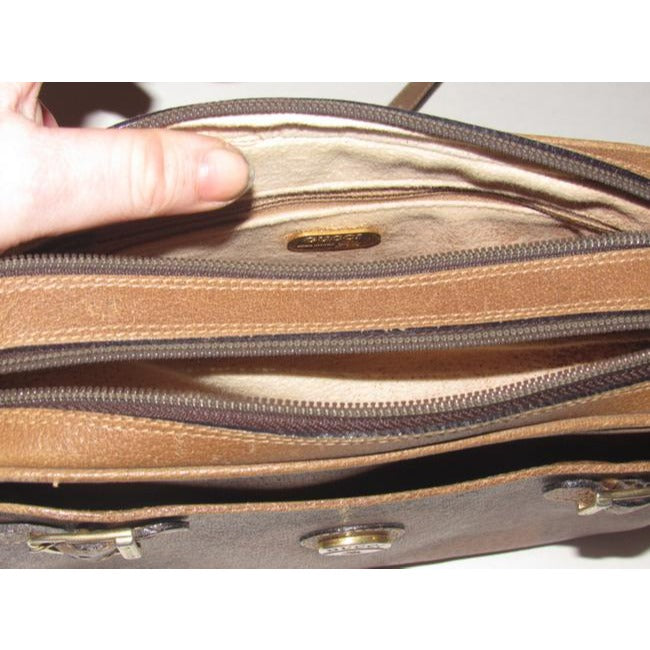 Gucci Vintage Brown Leather And Gold Hardware Coated Canvas Shoulder Bag