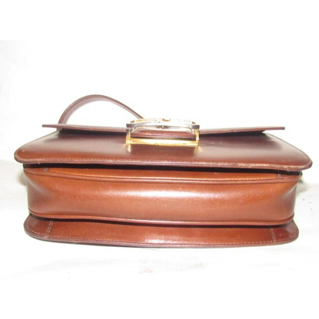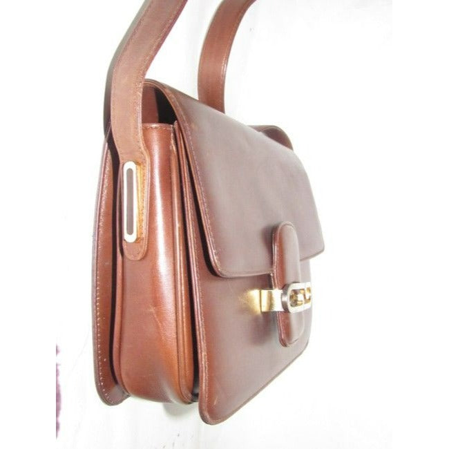 The purse is a rare style by Gucci! It is a caramel brown colored leather purse with gold logo accents at the sides and as the clasp. It is a classic, envelope top, mod style with an accordion style expandable bottom. The strap is adjustable so it can be worn as a shoulder bag or cross body! It has the perfect look and colors that will go with everything!