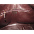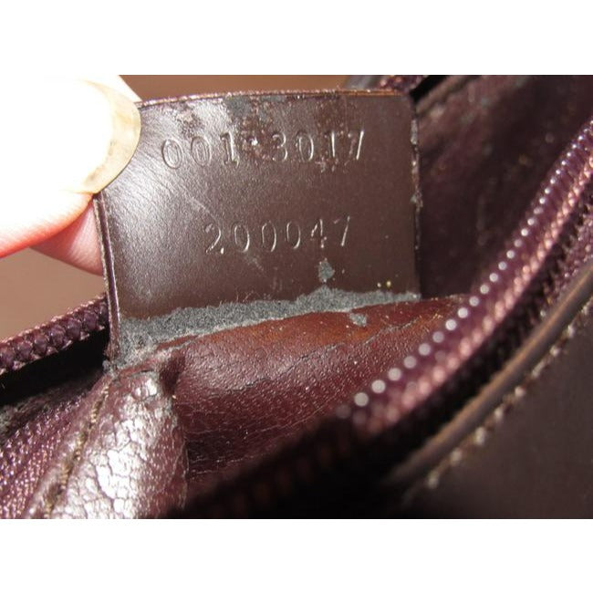 On the interior there is one main compartment with a back zipper pocket! The lining is a clean, brown leather coating that has not started to peel the way so many of the linings in the purses from this line from Gucci with bamboo accents. It has been sealed to try to prevent the lining from starting the peeling process. If for some reason the sealing process doesn't prevent the leather coating from starting to peel while in storage, I will have the sticky leather coating professionally removed to reveal the fabric below. The purse has a serial number of 001.3017.200047.