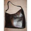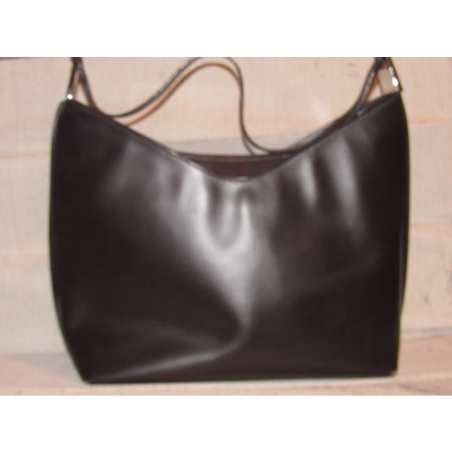 The bag is the perfect, large size, top handle, shoulder purse by Gucci! The purse is a fabulous and unique, brown glossy finished leather (it also came in a black glossy finish leather). It has a matching shoulder strap and bold chrome accents with a zip top closure. It has the true 1960's Gucci mod look!