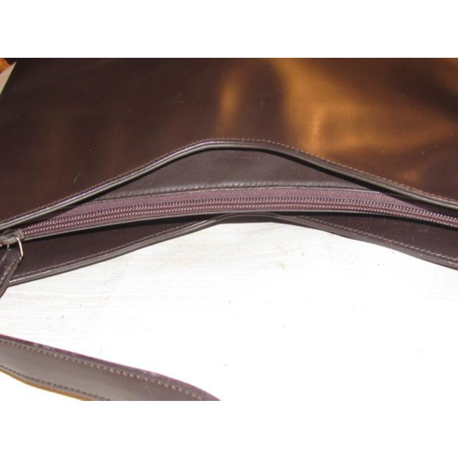 Gucci Vintage Brown Leather With V Top And Strap Shoulder Bag
