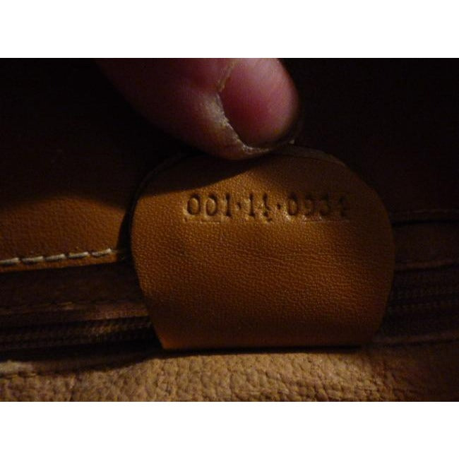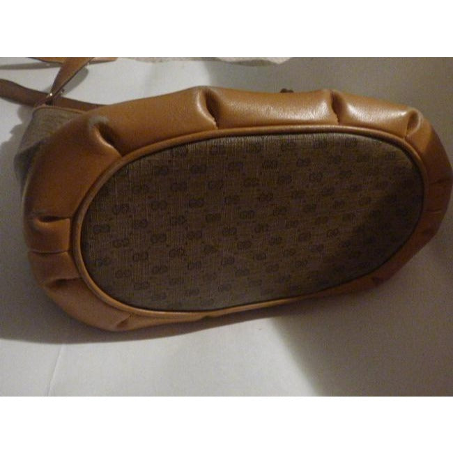 The bag is the perfect roomy bag by Gucci that is in a great color combination! The exterior is a brown small G logo coated canvas and leather with gold hardware. The purse snaps along the top to close. The purse is a large size and can hold quite a bit because of the compartments and wide bottom!!