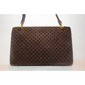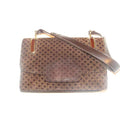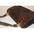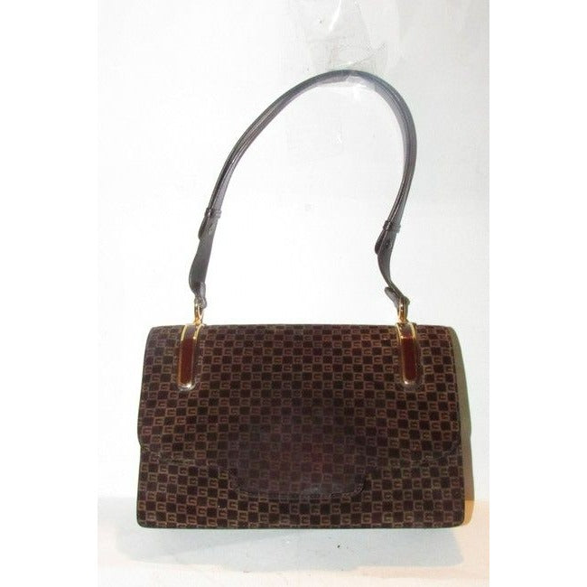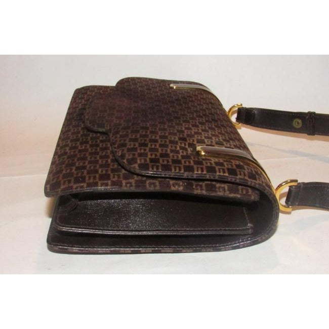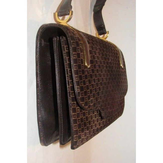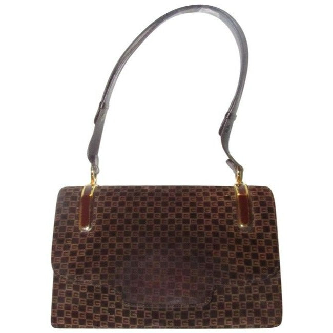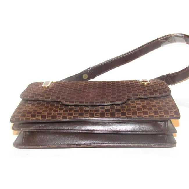 Gucci Vintage Brown Square G Logo Print Suede And Brown Leather Shoulder Bag