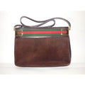 Gucci Vintage Brown Suede And Leather With Red And Green Striped Top Hobo Bag