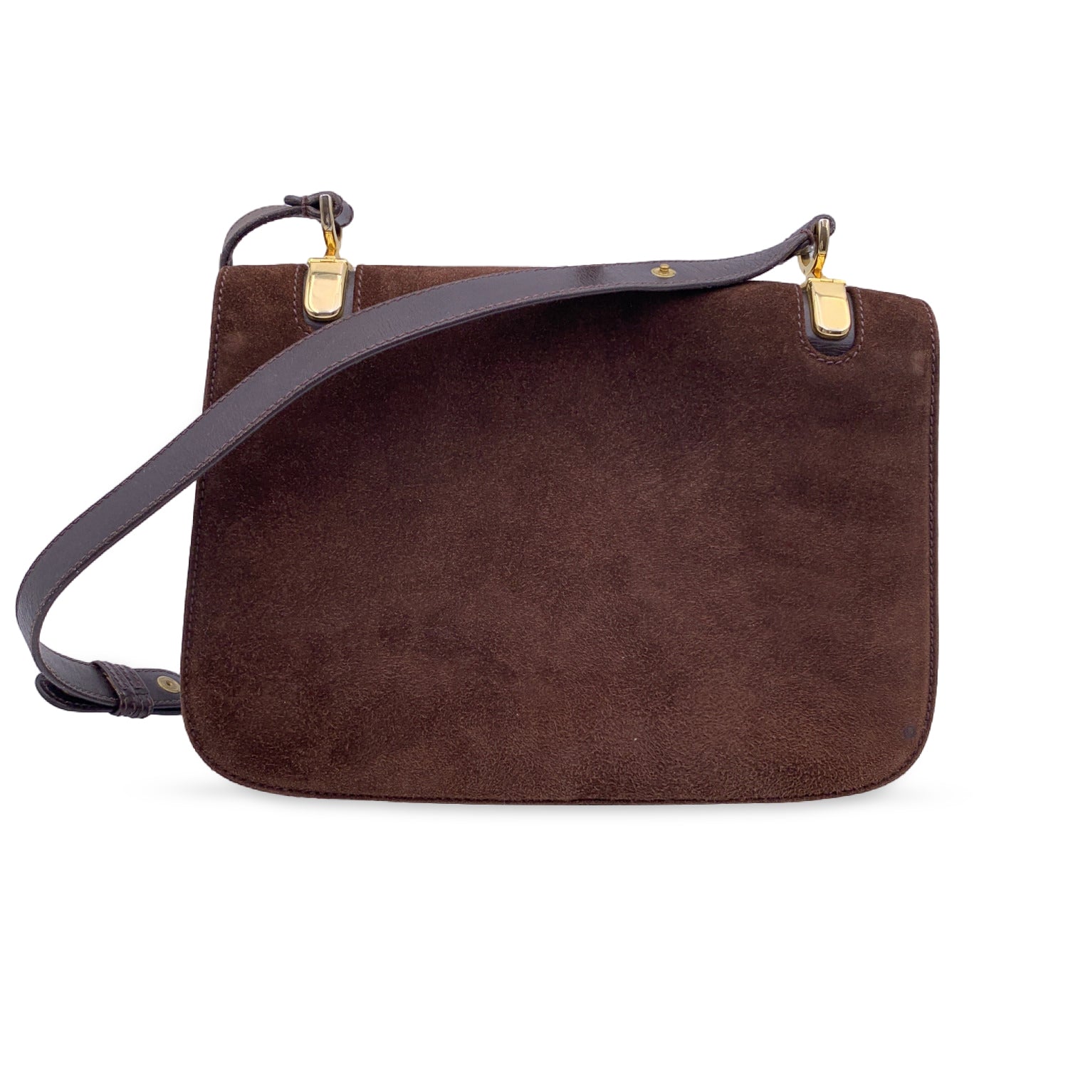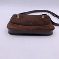 GUCCI Vintage Brown Suede Flap Enamel Shoulder Bag