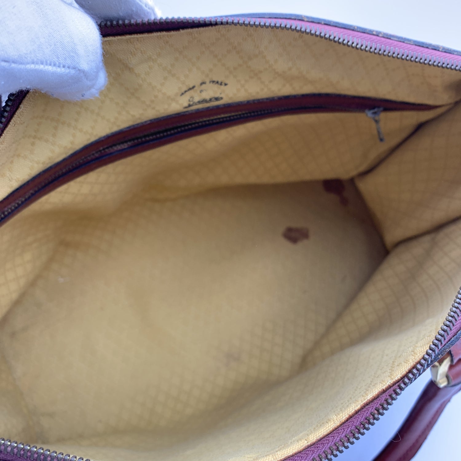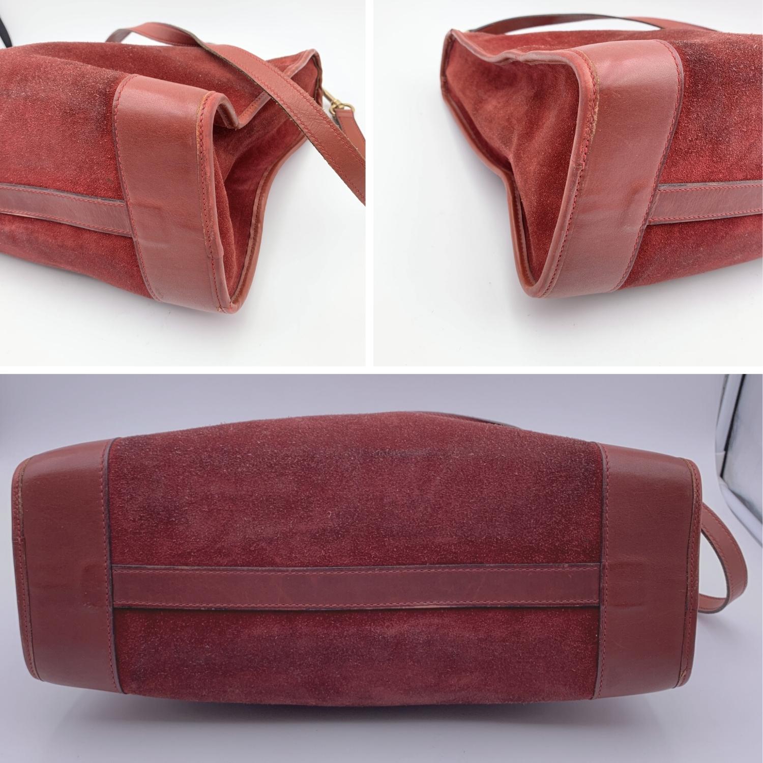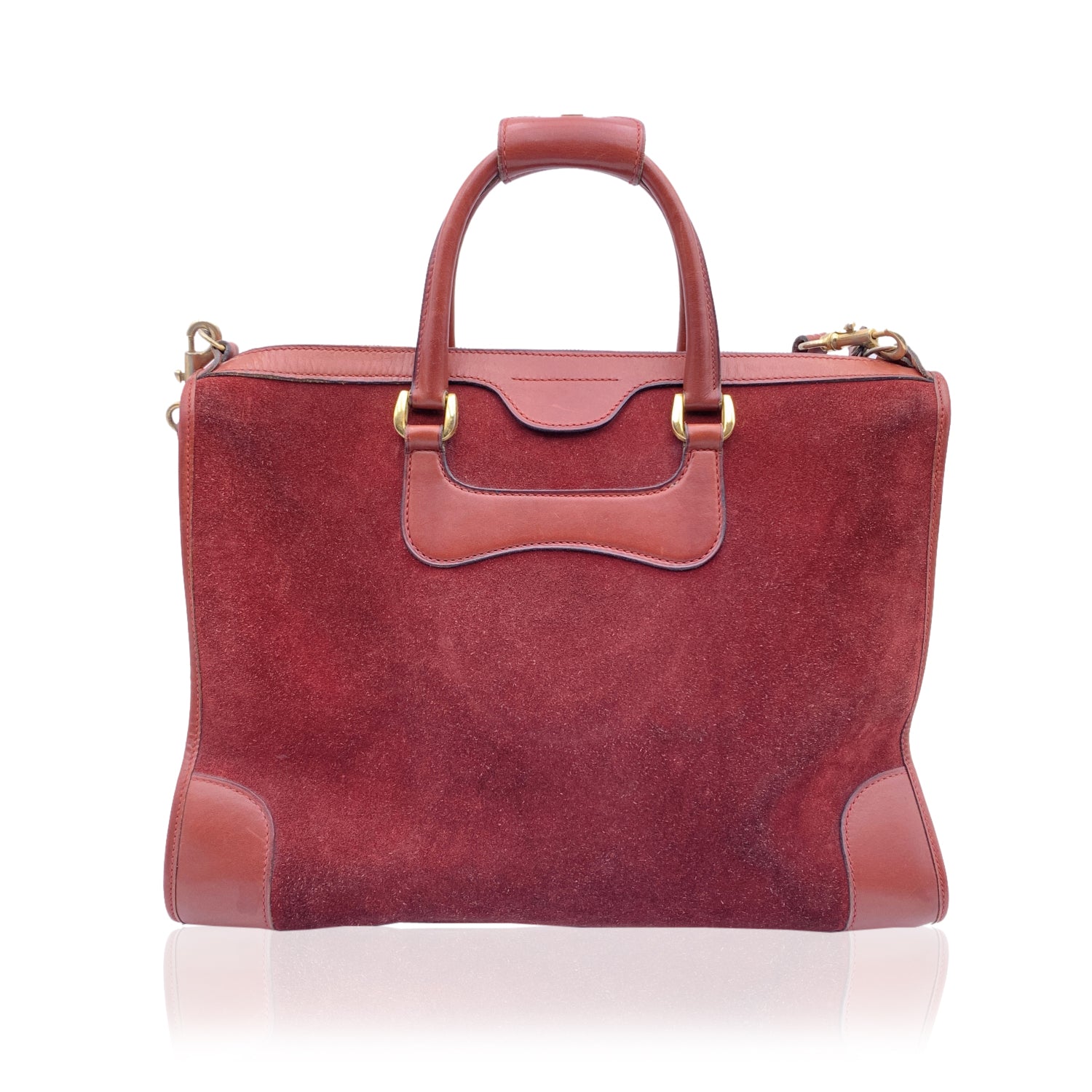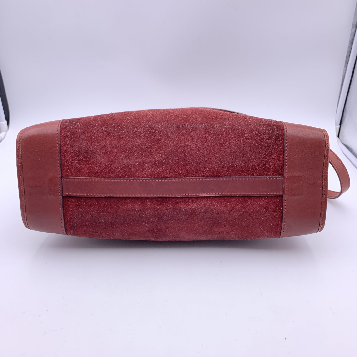 GUCCI Vintage Burgundy Suede And Leather Satchel Tote With Strap