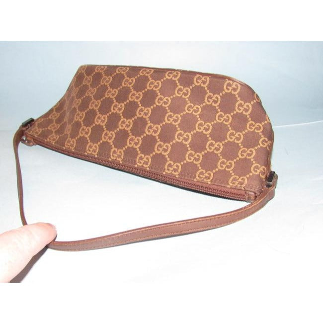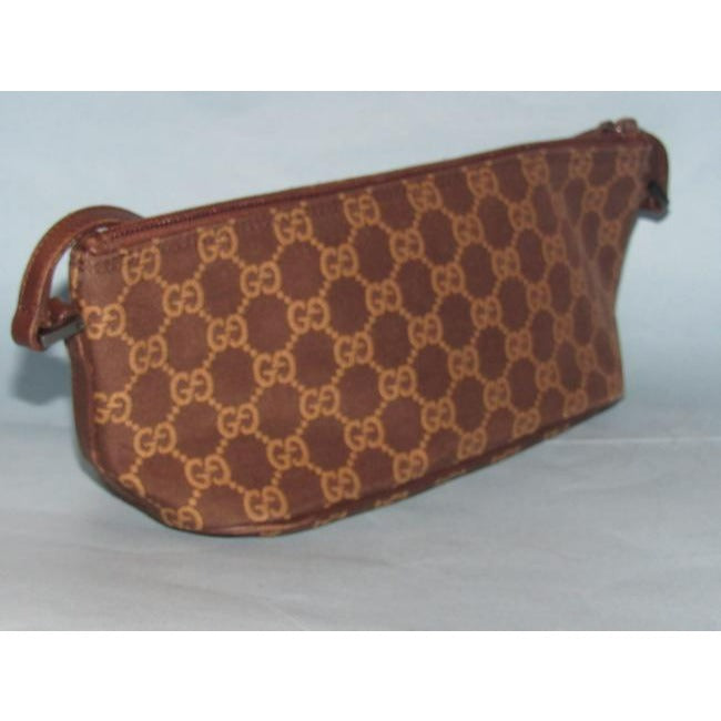 For sale is a Gucci, petite, camel Guccissima print on brown canvas and brown leather Pouchette Hobo Bag with chrome hardware and a zip top closure! It is a the classic hobo style from Gucci that would be great used as your 'night out' or 'only essentials' purse!