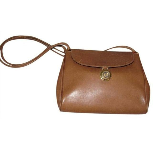 Gucci Vintage Camel Leather With Gold Gg Accents Shoulder Bag